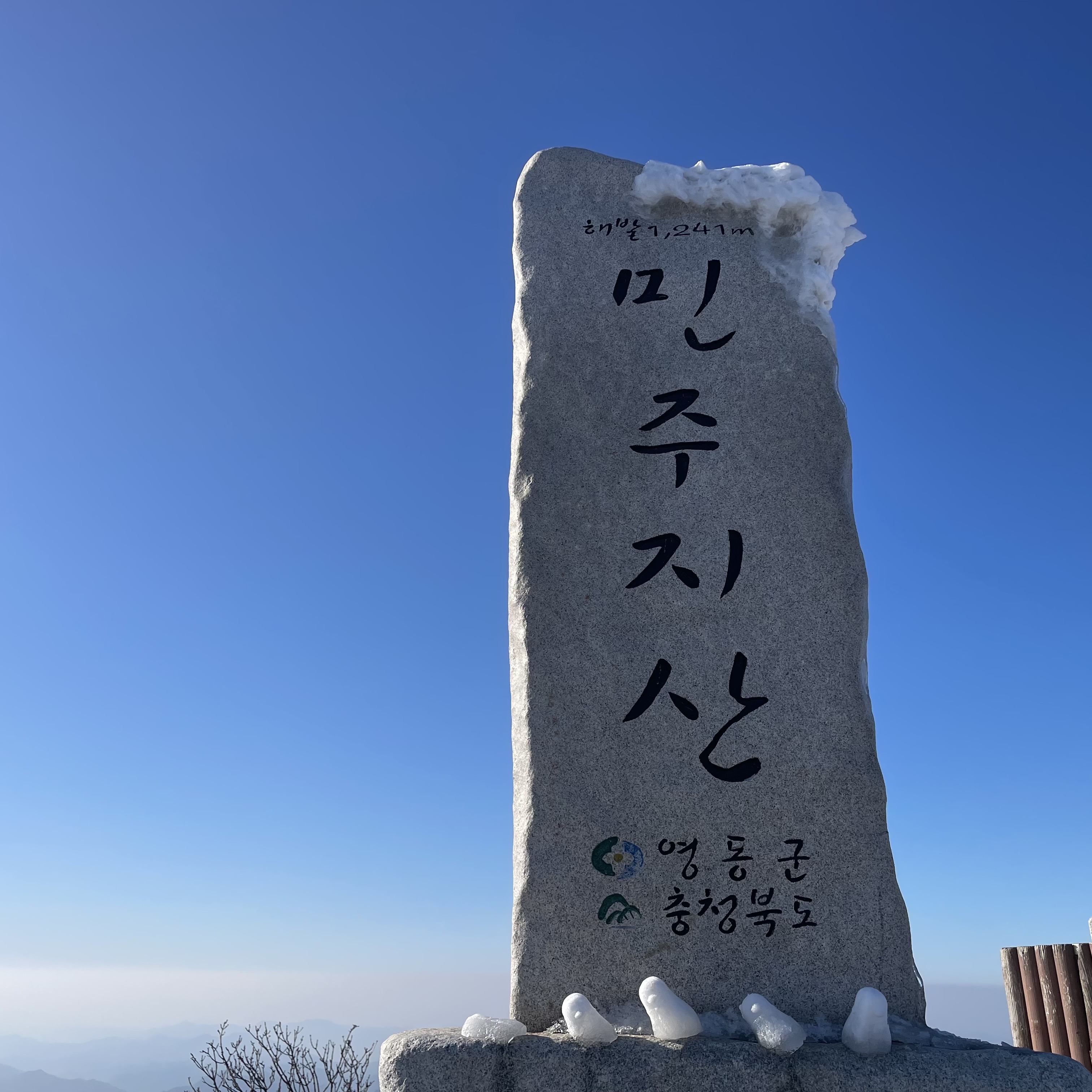 충북 영동과 무주 설천, 경북 김천의 경계에 자리잡고 있는 민주지산이라는 곳을 다녀왔습니다. 민주지산이라는 이름이 무언가 민주주의와 관련이 있나 싶었는데 그건 아니더라구요. 원래는 민두름산이라 지역 사람들에게 불리웠는데 이를 한자로 바꾸면서 민두름이 민주지로 대체되었다고 합니다. 처음 가본 민주지산은 너무 예쁜 곳이었습니다. 눈이 그대로 남아있어 설산의 모습이었는데 다른 나라에 온 듯한 기분이었네요. 최단코스로 2시간~ 3시간 사이면 다녀올 수 있으니 도전해보시기 바랍니다.