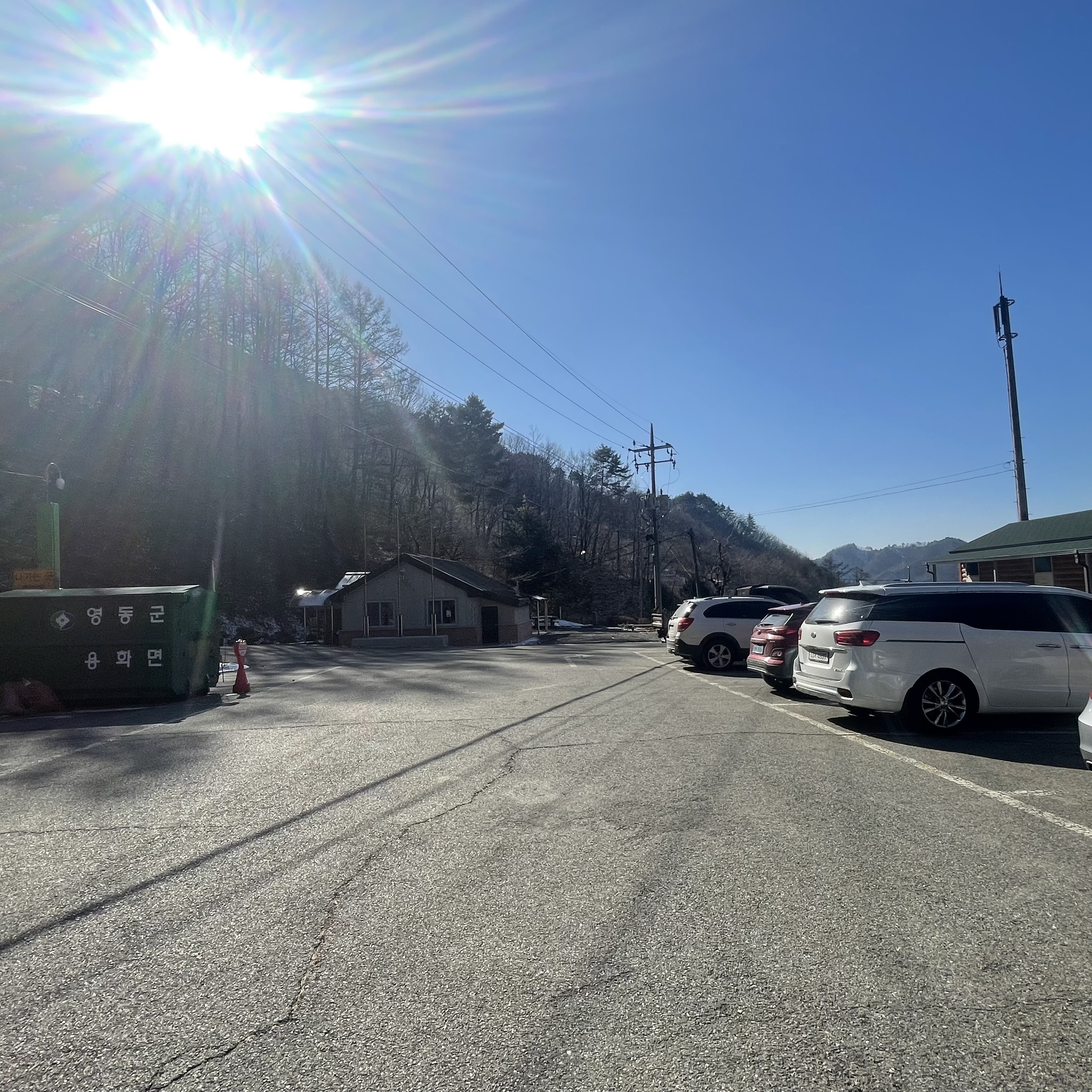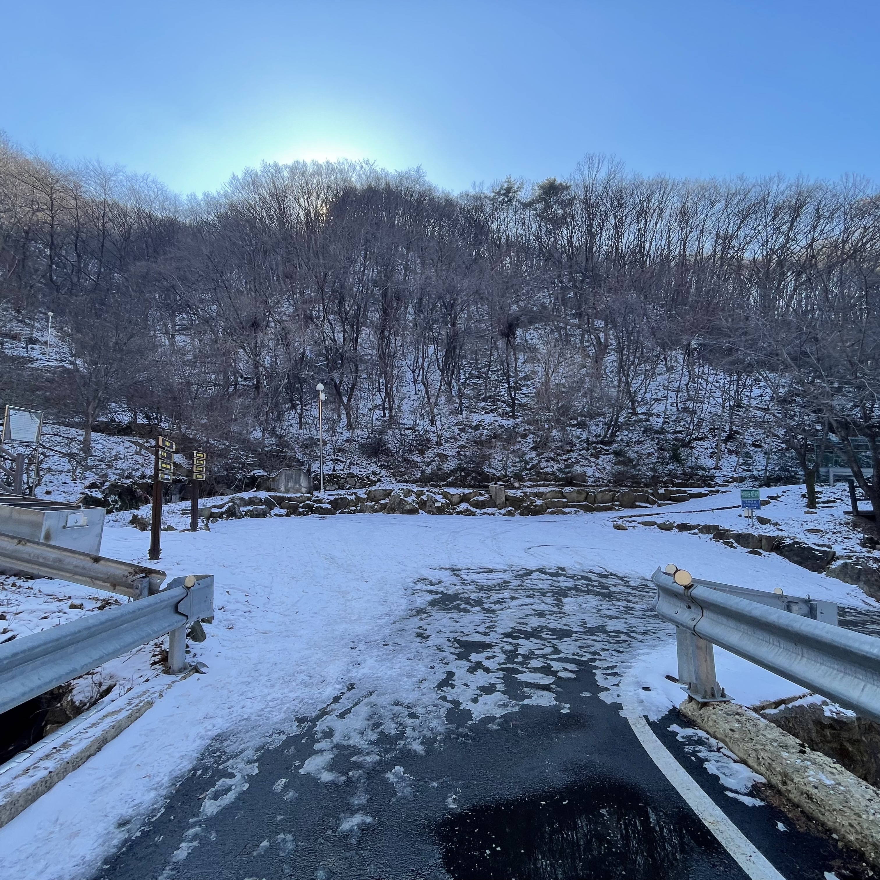 민주지산 자연휴양림을 네비에 찍고 출발하시면 매표소 옆에 주차장이 있습니다. 그곳에 주차를 하시면 됩니다. 자연휴양림이 현재는 휴관중이어서 위로 올라가는 임도를 통제한건지 눈이 많이 쌓여있어서 통제중인지 모르겠지만 최단코스를 가시는 분들은 통제가 없다면 임도를 타시고 쭈욱 위로 올라가시면 됩니다. 민주지산 자체가 너무 예뻐서 한여름에는 자연휴양림을 이용해도 좋을 것 같더라구요.