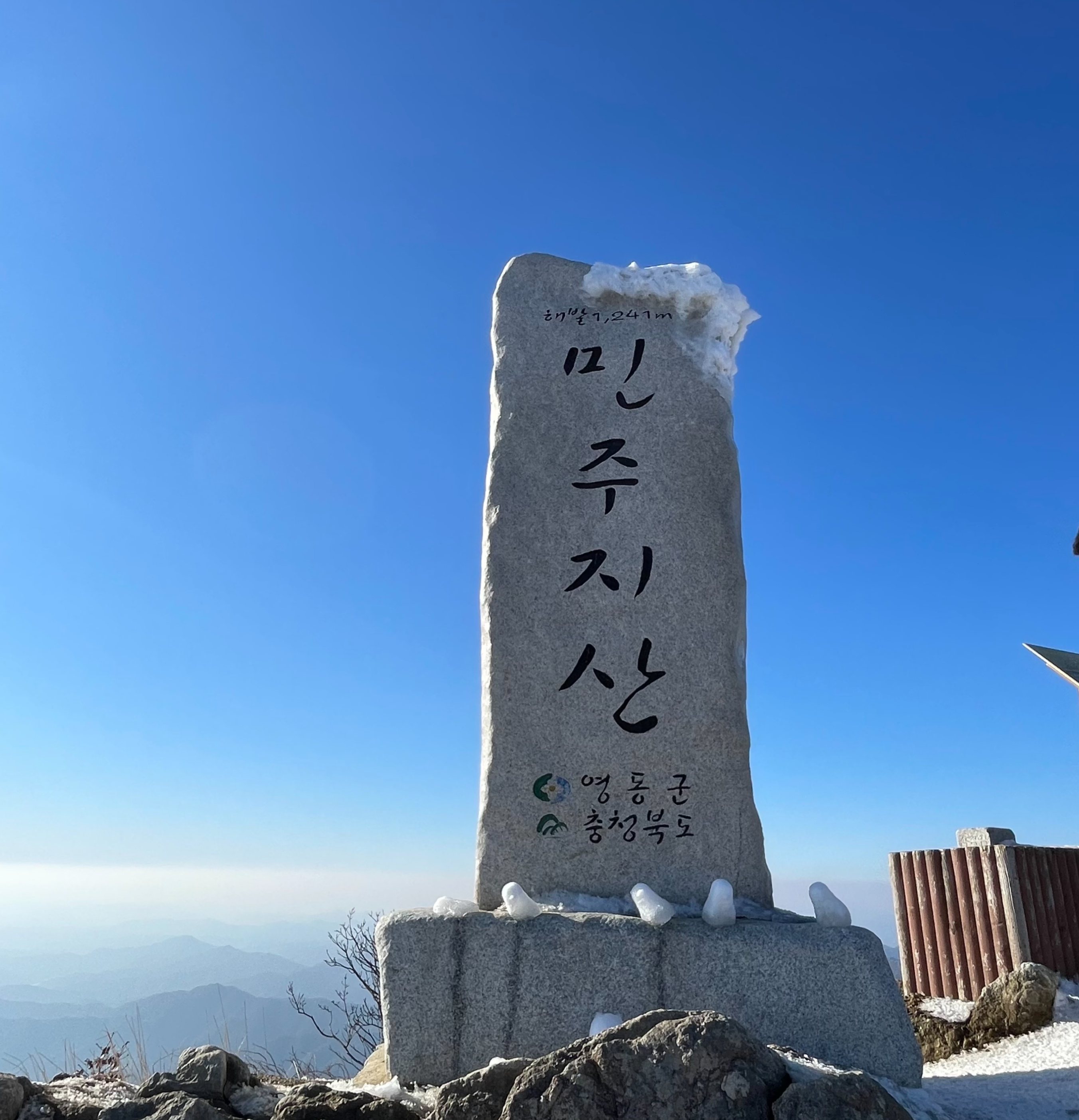 충북 영동과 무주 설천, 경북 김천의 경계에 자리잡고 있는 민주지산이라는 곳을 다녀왔습니다. 민주지산이라는 이름이 무언가 민주주의와 관련이 있나 싶었는데 그건 아니더라구요. 원래는 민두름산이라 지역 사람들에게 불리웠는데 이를 한자로 바꾸면서 민두름이 민주지로 대체되었다고 합니다. 처음 가본 민주지산은 너무 예쁜 곳이었습니다. 눈이 그대로 남아있어 설산의 모습이었는데 다른 나라에 온 듯한 기분이었네요. 최단코스로 2시간~ 3시간 사이면 다녀올 수 있으니 도전해보시기 바랍니다.