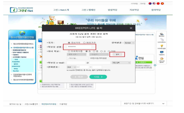 ▶ 사용자 정보에 국가, 언어, 학부모 성명 입력 및 자녀 학교 정보 입력 & 학부모 정보 입력 후 설치 계