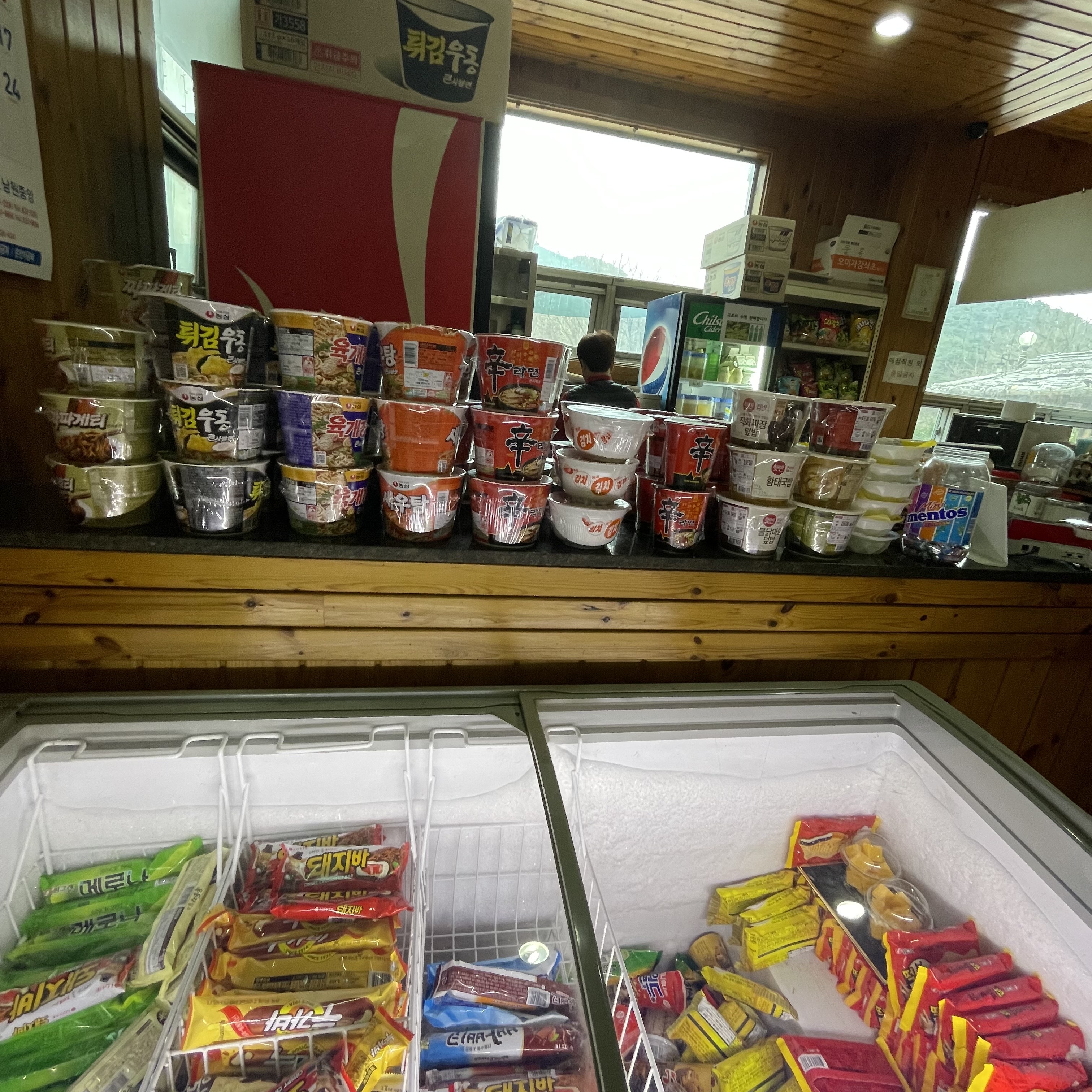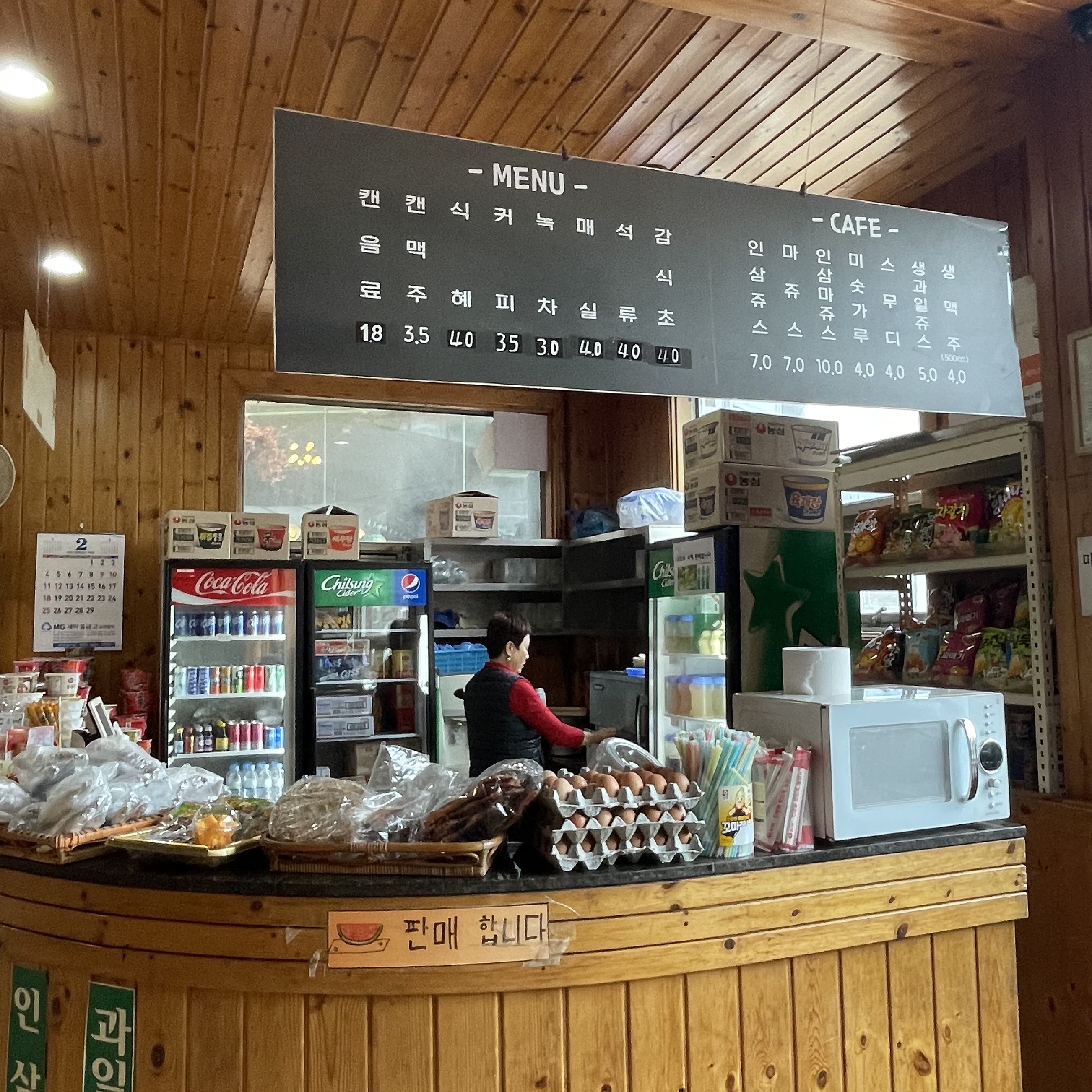 매점에 각종 음료 및 컵라면, 컵밥, 구운달걀, 아이스크림, 과자, 고구마, 가래떡, 쥐포 등 정말 다양하게 판매를 합니다. 단, 외부에 비해 가격이 좀 더 나간다는 점!!