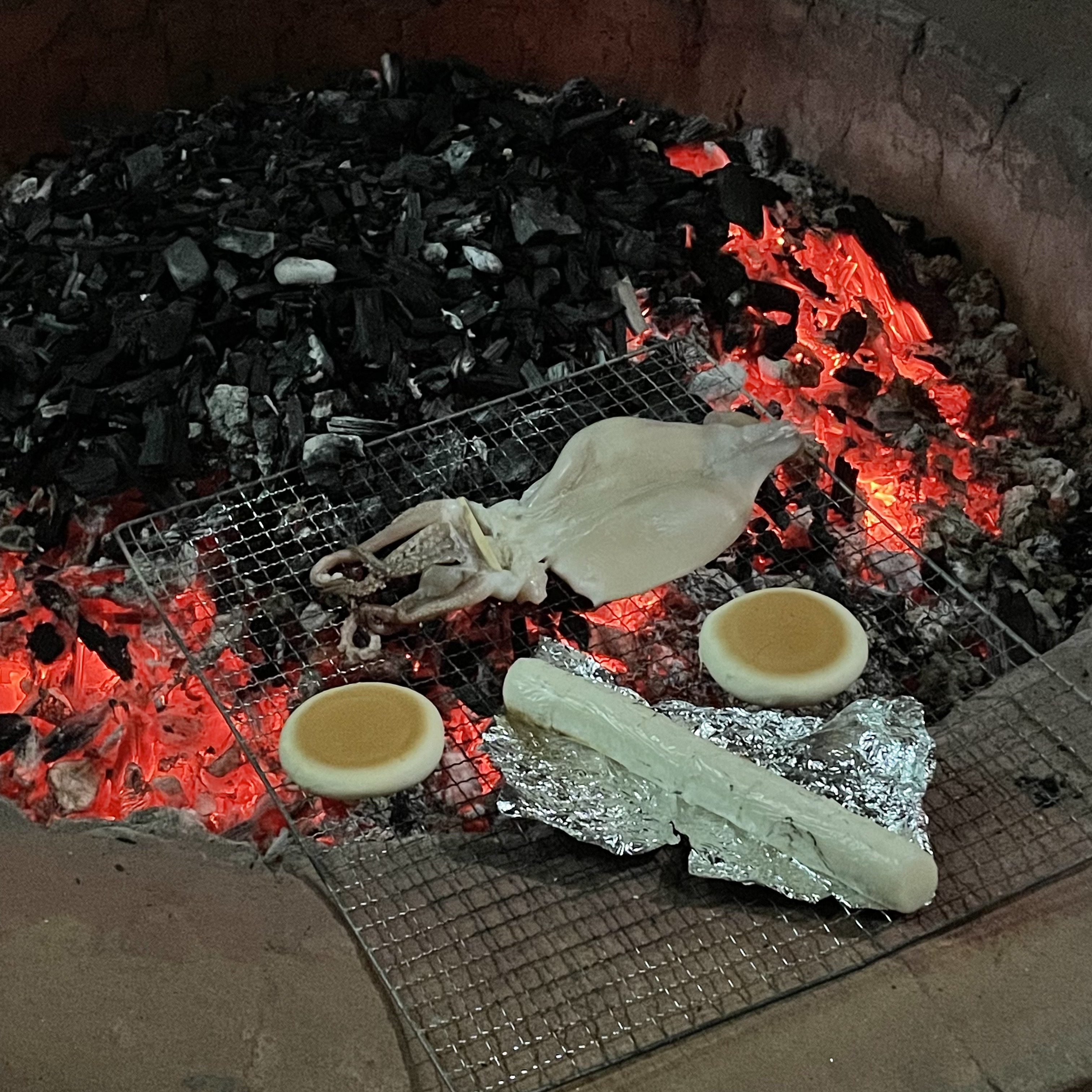 이곳의 재미 중 하나는 숯불에 음식을 구워먹을 수 있는 장소가 있다는 점!! 한증원을 좀 다녀보신 분들은 정말 다양한 것을 싸워셔서 맛나게 즐기시더라구요. 물로, 매점에서 고구마, 가래떡, 오징어, 쥐포 등을 판매하고 있습니다.ㅎㅎ 한증원 초보분들은 매점에서 사오지만 한증원 고인물은 외부에서 좀 더 싸고 다양한 먹거리등을 가져야 즐기십니다.