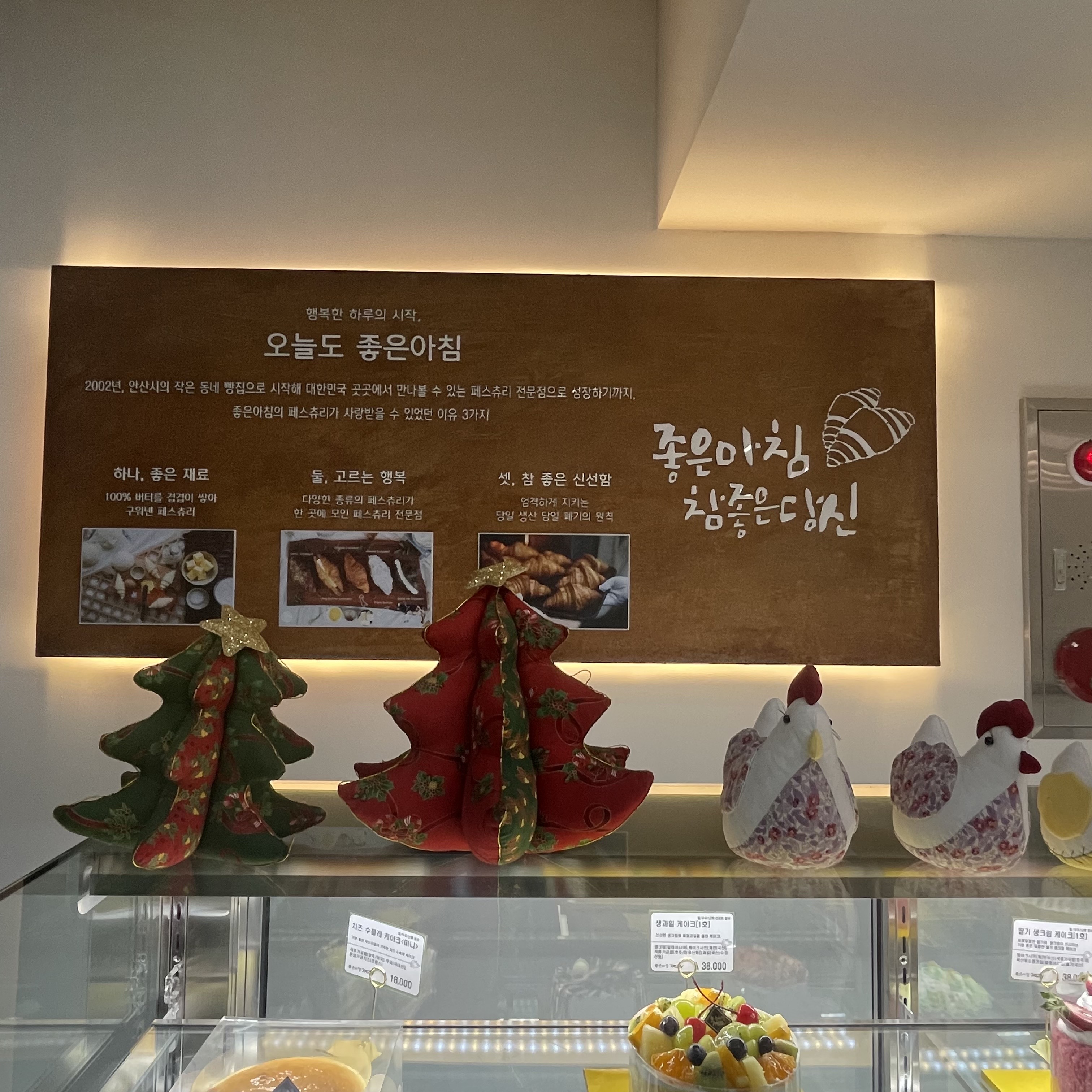 좋은 아침 페스츄리는 베이커리가 주가 되는 카페 입니다. 가게 이름답게 다양한 페스츄리들이 있더라구요. 그외에 케이크, 샌드위치, 식빵등도 있으니 선택의 폭이 넓습니다. 이곳의 케이크 들은 되게 색깔이 화려하더구요.ㅎㅎ