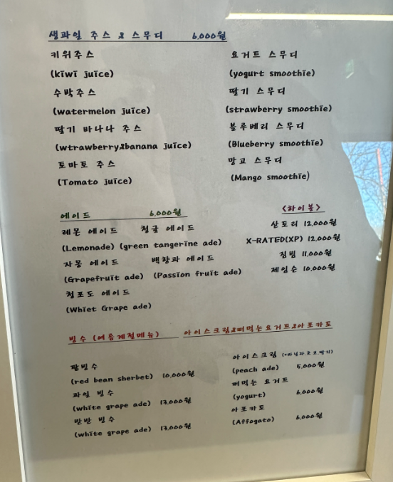 음료 메뉴에요. 이곳은 빵이 맛있는 곳이기에 음료는 참고정보만 하는걸로!!ㅎㅎ