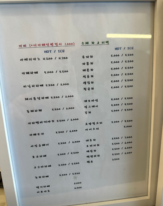 음료 메뉴에요. 이곳은 빵이 맛있는 곳이기에 음료는 참고정보만 하는걸로!!ㅎㅎ