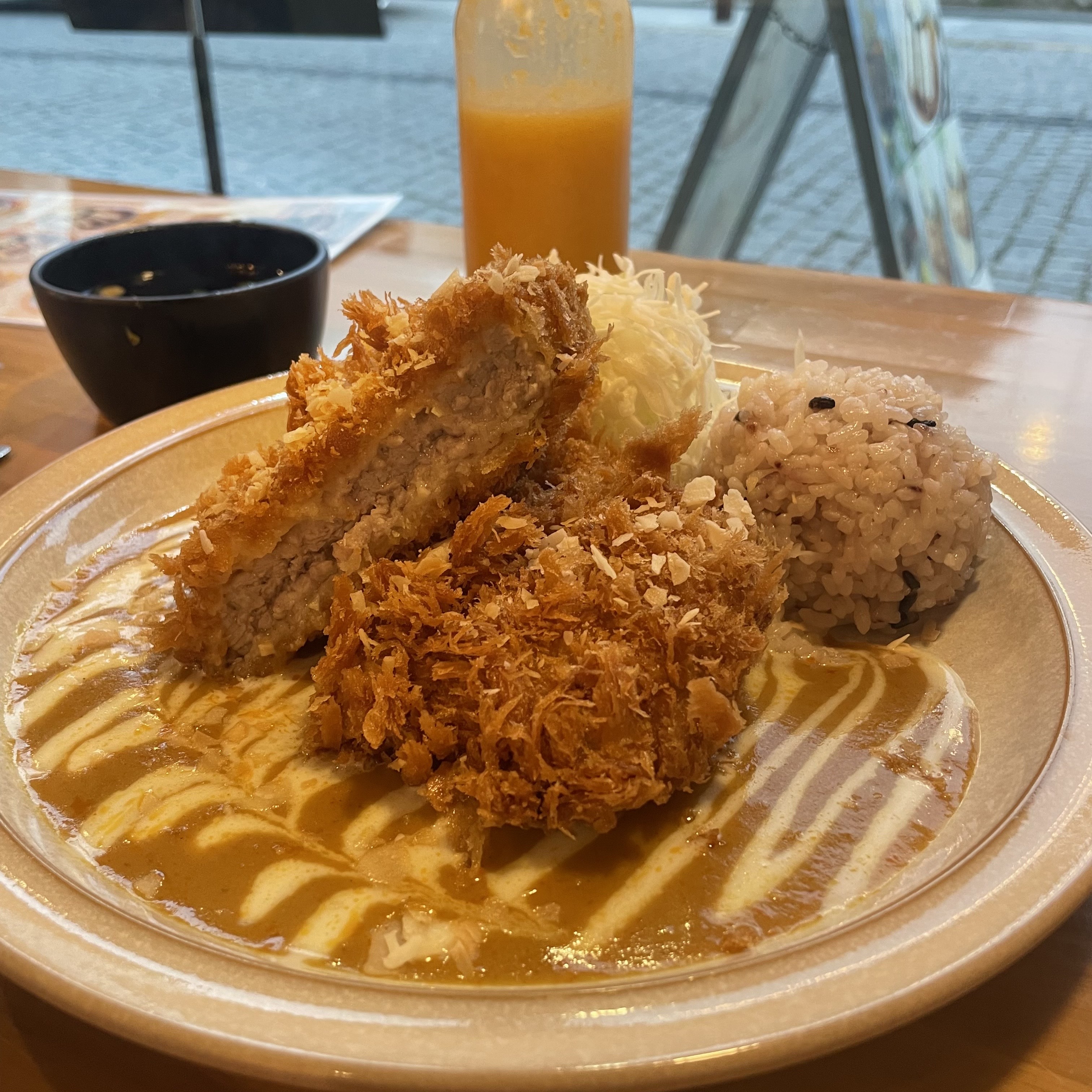 먼저, 핫커리청양카츠입니다. 일단 압도적인 고기 두께에 놀라웠습니다. 제주 흑돈을 직접 공수받아 만드신다고 하느데.. 사장님의 돈까스에 대한 내공이 남달라 보입니다. 그리고 사진으로도 보이는 바싹한 겉면이 보이시나요? 로띠팜의 돈까스... 기대 이상이었습니다. 핫커리는 너무 맵지 않고 은은한 청양고추의 매운 맛이 입안을 감싸는 정도였습니다.