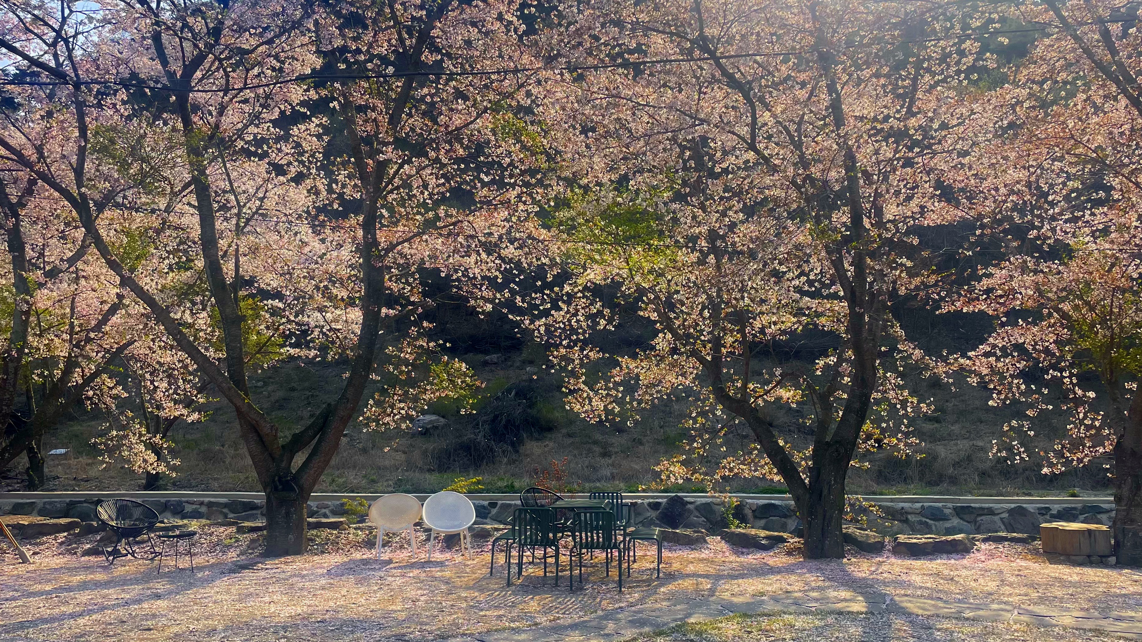 벚꽃이 펴있는 뒷마당쪽은 폴딩도어로 활짝 열어놓아 봄바람 맞으며 시간가는 줄 모르게 벚꽃 구경을 했네요.