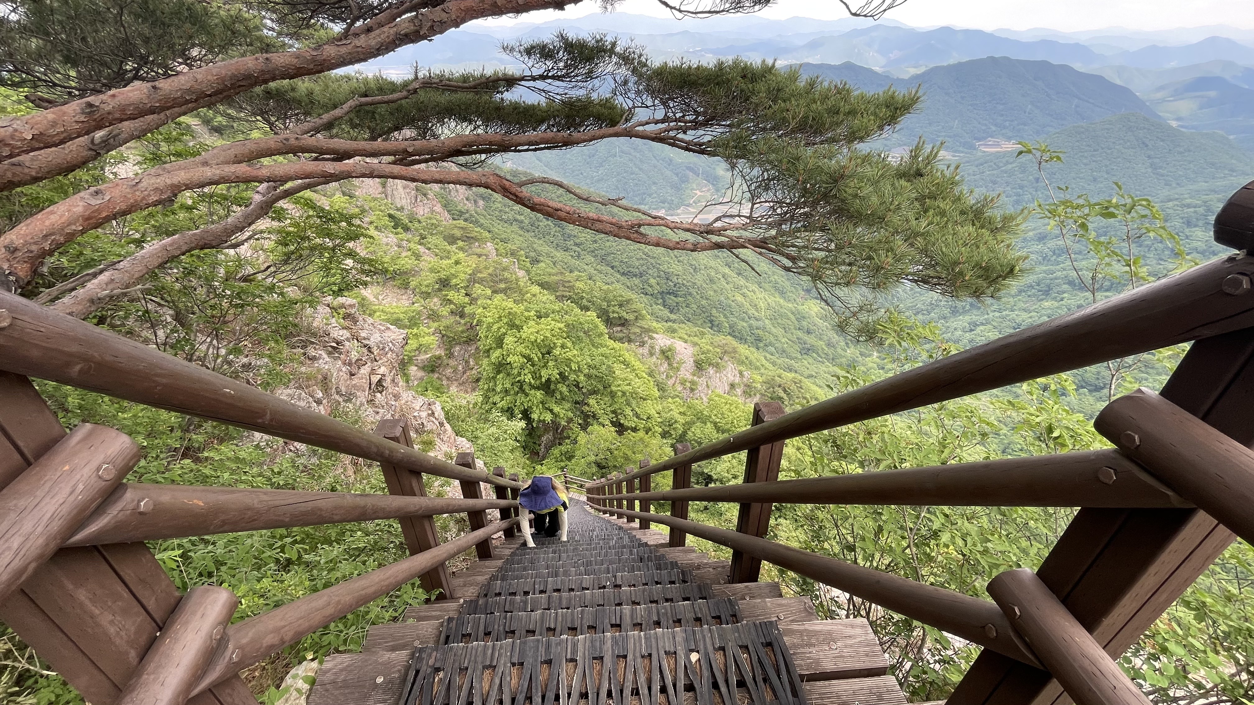 이게 계단인지 사다리인지 헷갈리는 경사도와 계단 높이입니다. 사족보행이 오히려 편한 구간도 있답니다.ㅎ 저희는 그나마 1봉에서 시작해서 오르는 구간이었는데 반대로 시작하신 분들은 더 무섭겠더라구요.  아에 뒤로 내려오시는 분들도 있더라구요.