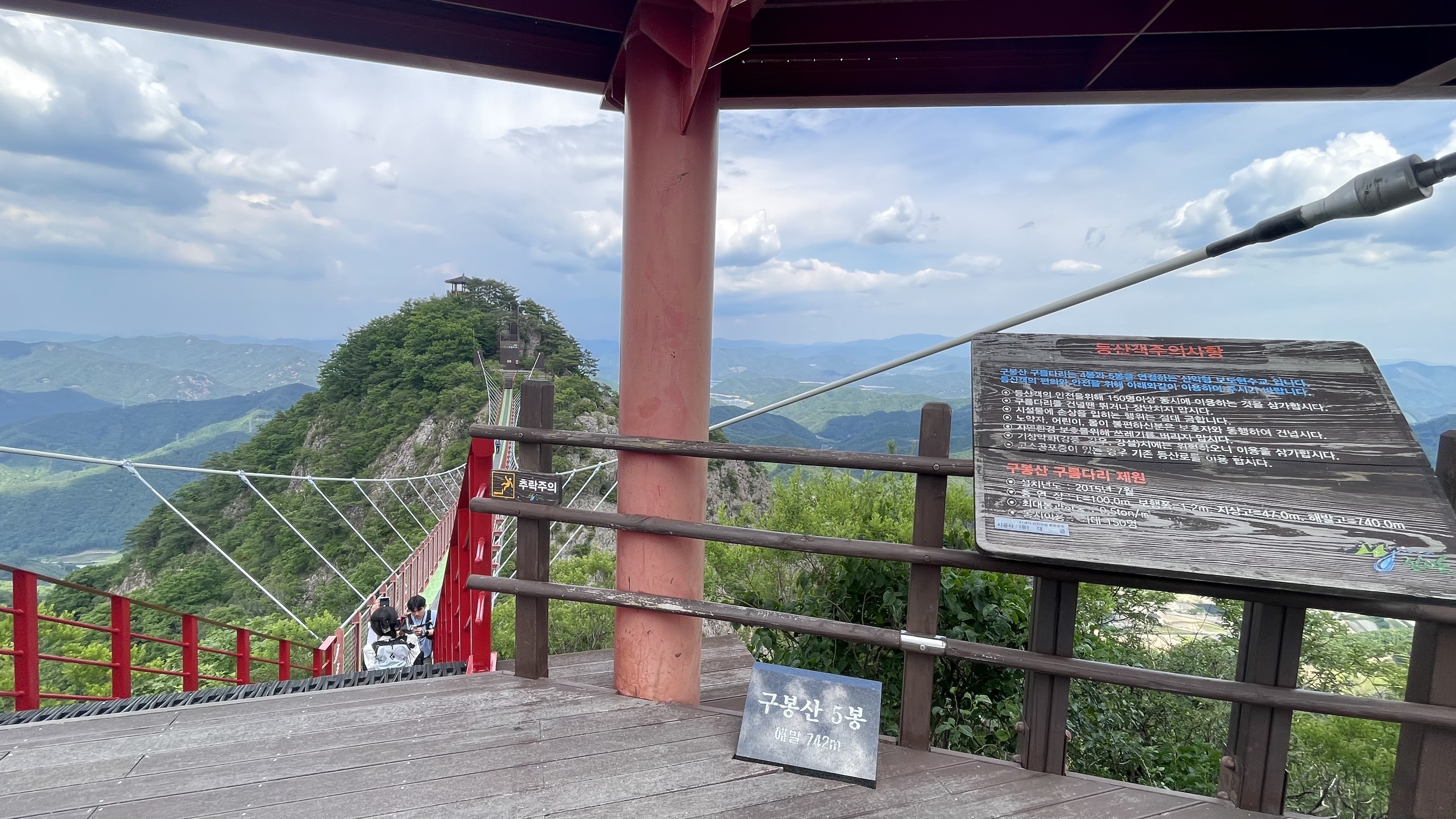 구름정을 뒤로 하고 5봉을 향해 가다보면 아래에서부터 보이던 아찔한 출렁다리가 나옵니다. 예전에 국내에서 가장 긴 출렁다리였다고 하는데... 요즘에는 워낙에 살발한 출렁다리들이 많이 생겨서 예전 명성만큼은 아닌가 봅니다. 저도 여러 출렁다리들을 경험해봐서인지...  보기보다는 안무섭더라구요.ㅎ