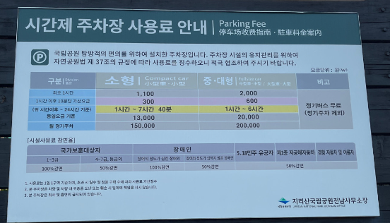 성삼재휴게소를 네비게이션에 찍으시고 휴게소 주차장에 주차를 하시면 됩니다. 지리산에서 가장 높은 곳에 위치하고 있는 휴게소로 성삼재휴게소에서 바라보는 경치또한 아주 멋지니 찬찬히 휴게소를 둘러보신 후 화장실 방문 및 채비를 하시고 출발하시면 됩니다. 성삼재 휴게소는 유료 주차이니 주차비 참고하시기 바랍니다.