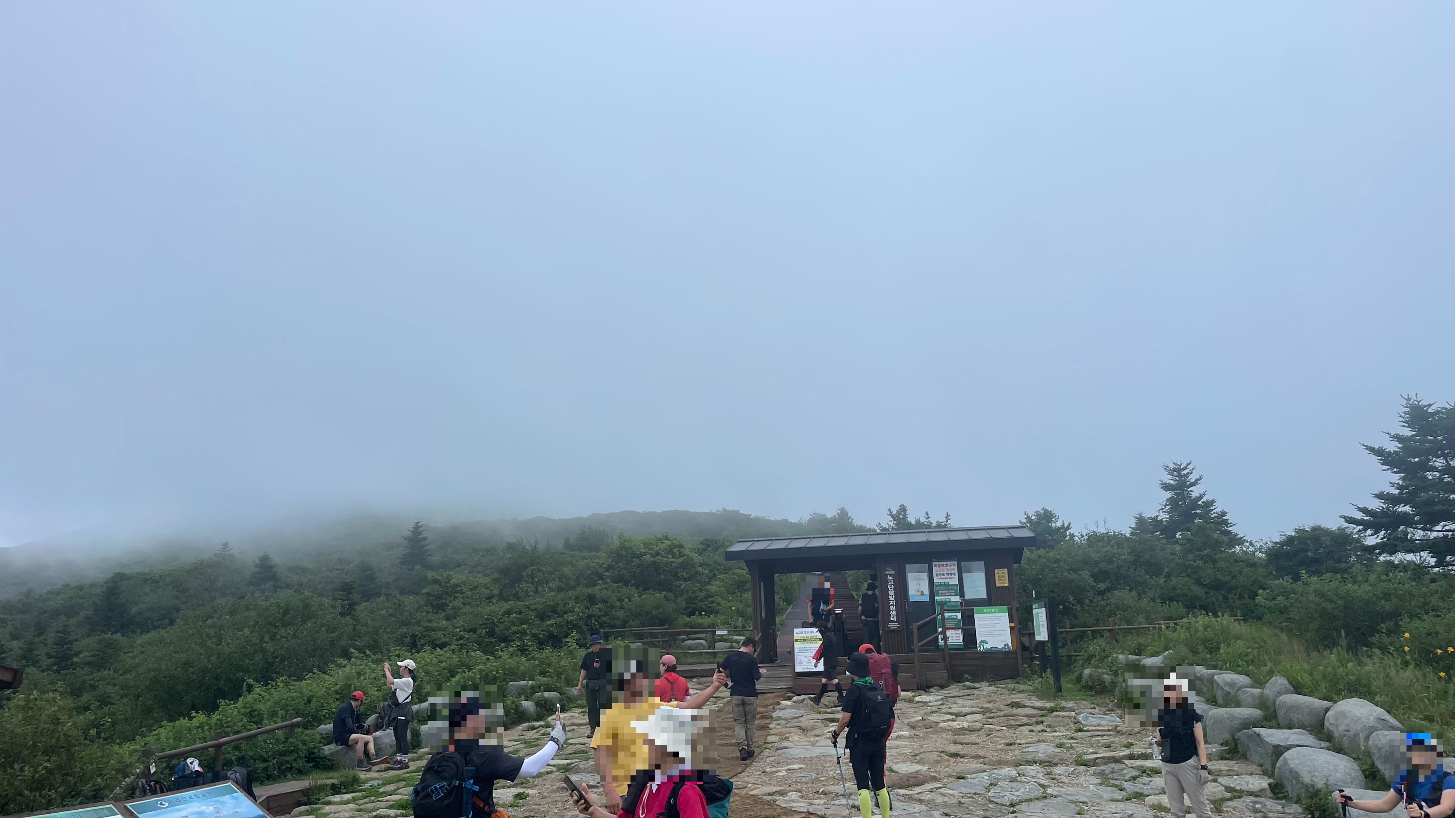 휴게소에서 노고단 고개까지는 오르막 길이 쭈욱 이어집니다. 중간에 노고단 대피소가 마지막 화장실이니 조금이라도 신호가 있다면 꼭 볼일 해결하시구요.!! 처음에는 임도길을 따라 걷기에 아주 무난하나 노고단 고개까지 가는 마지막 돌길은 난이도가 상당합니다.