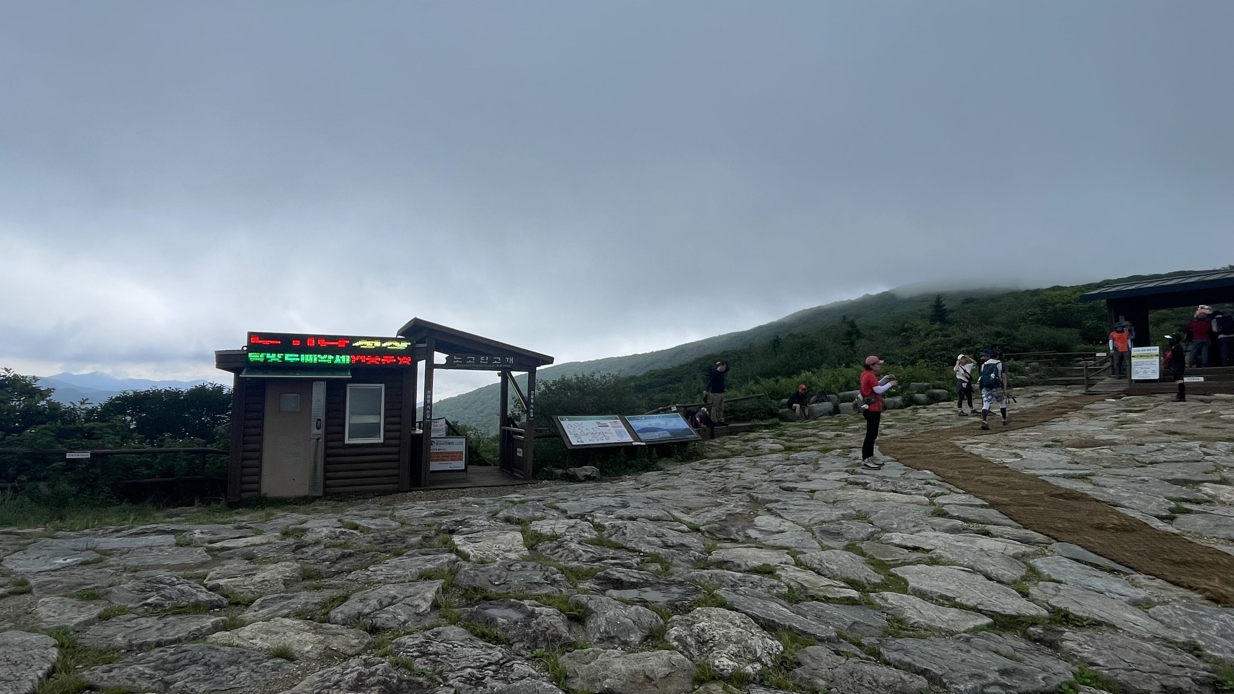 노고단 고개에 도착하시면 일단 한 숨 쉬시며 지리산의 능선을 조망하실 수 있습니다. 여기에서 노고단 정상을 다녀오실 분들이라면 미리 탐방예약을 하시고 노고단 정상까지 다녀오시면 됩니다. 저는 오전에 워낙 곰탕이라 하산길에 노고단을 다녀왔네요. 노고단에서 바라보는 경치가 백미이니 아직 안가보신 분들이라면 꼭 다녀오시길 추천드려요.
