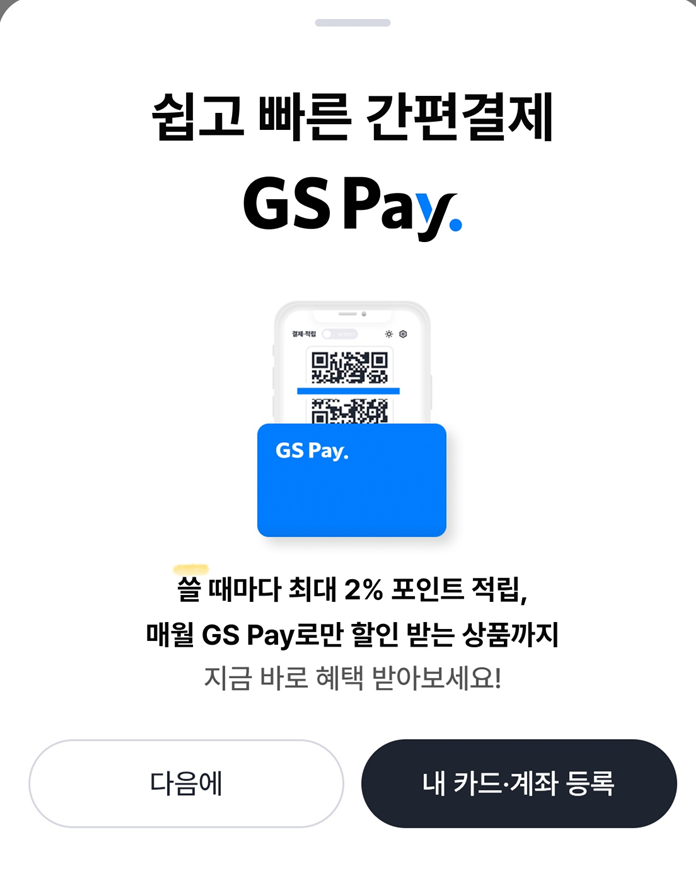 아래의 과정을 거치면 GS 페이를 편의점에 이용 가능합니다.