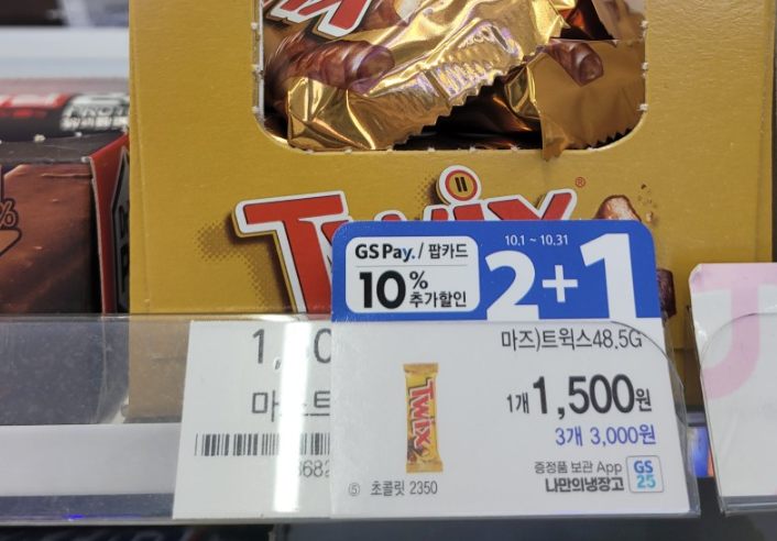 - 편의점 상품들 중에서 GS 페이로 결제시 10% 할인 이라는 행사 상품을 볼 수 있습니다. 이 상품들을 GS Pay로 결제시 10% 할인되어 결제가 됩니다.