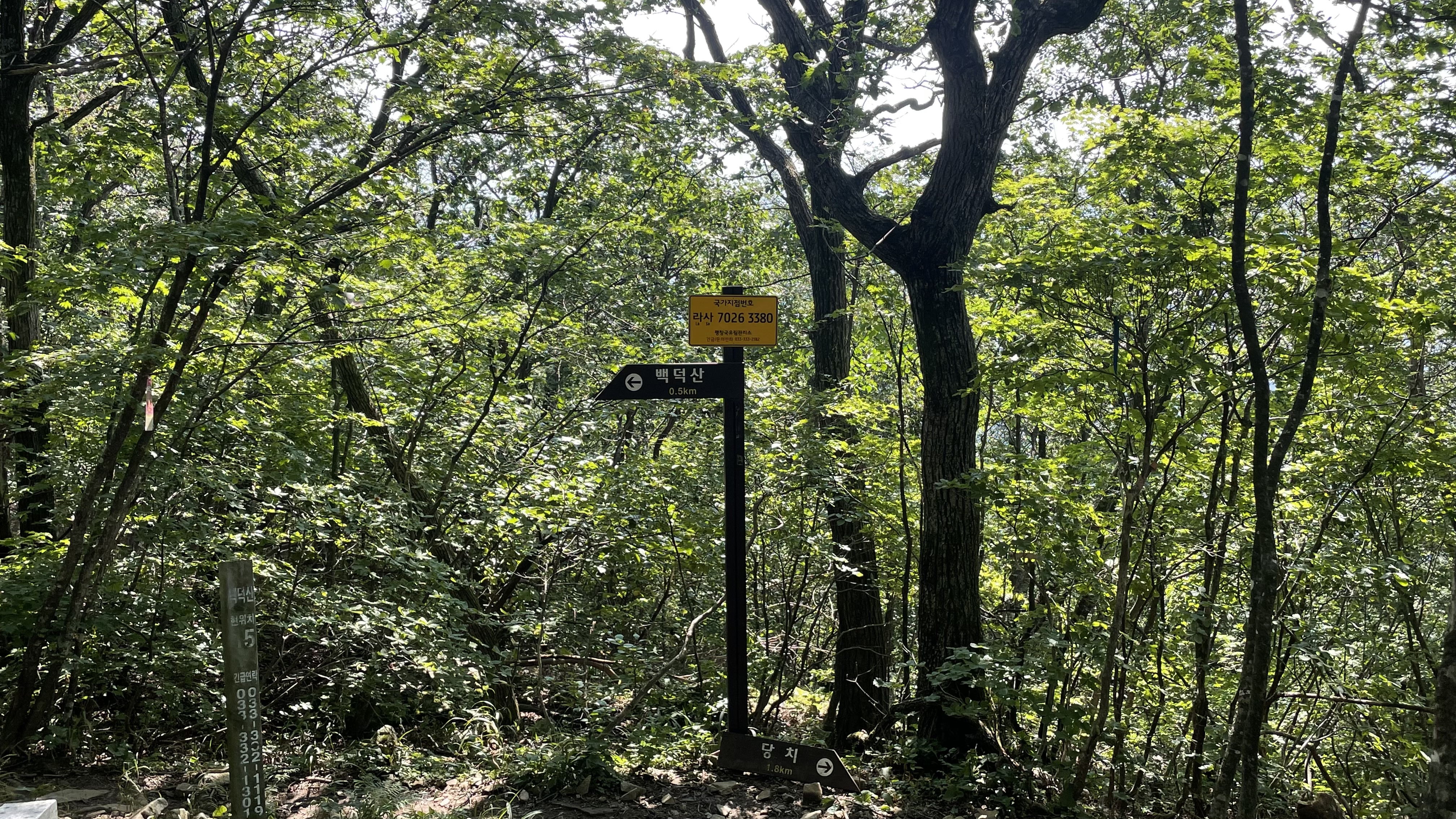 위 구간 다음으로는 경사가 조금은 나아집니다. 약간의 오르락 내리락 코스가 이어지며 1280봉부터 야간의 경사만 오르면 정상석을 만나실 수 있습니다. 이 구간에 백덕산의 트레이드 마크 서울대 나무를 만나실 수 있어요.