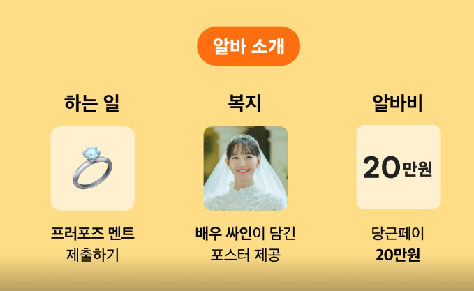 - 참여방법: 하단의 이벤트 참여 페이지 이동 - 지원하기 - 자기소개에 프러포즈 멘트 입력- 지원 완료!