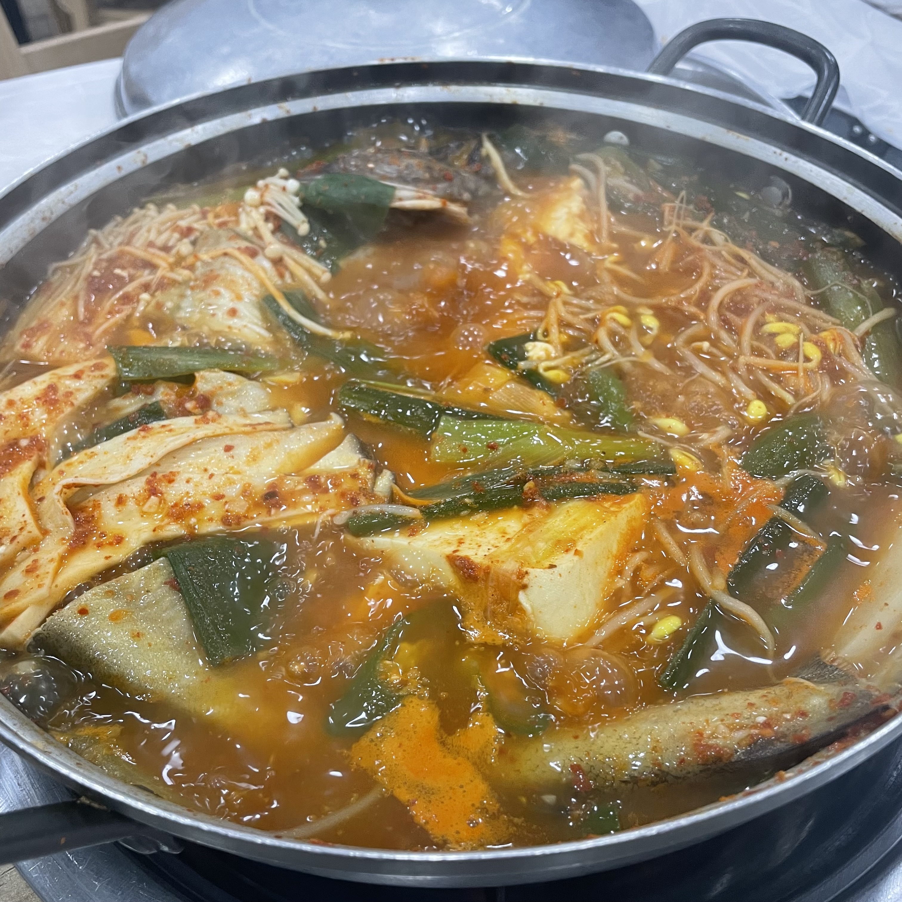 대성식당에 오셨으면 일단 동태찌개를 먹어보세요.!! 칼칼하고 시원한 국물과 큼직한 동태를 간자와사비 양념에 찍어먹으면 저같은 소식가도 밥 두공기 순삭입니다. 그리고 동태찌개를 주문할때 꼭!! 알고니를 추가하세요.!! 기본 동태찌개에는 알고니가 없습니다. 꼭 추가하셔야 합니다.!!!!
