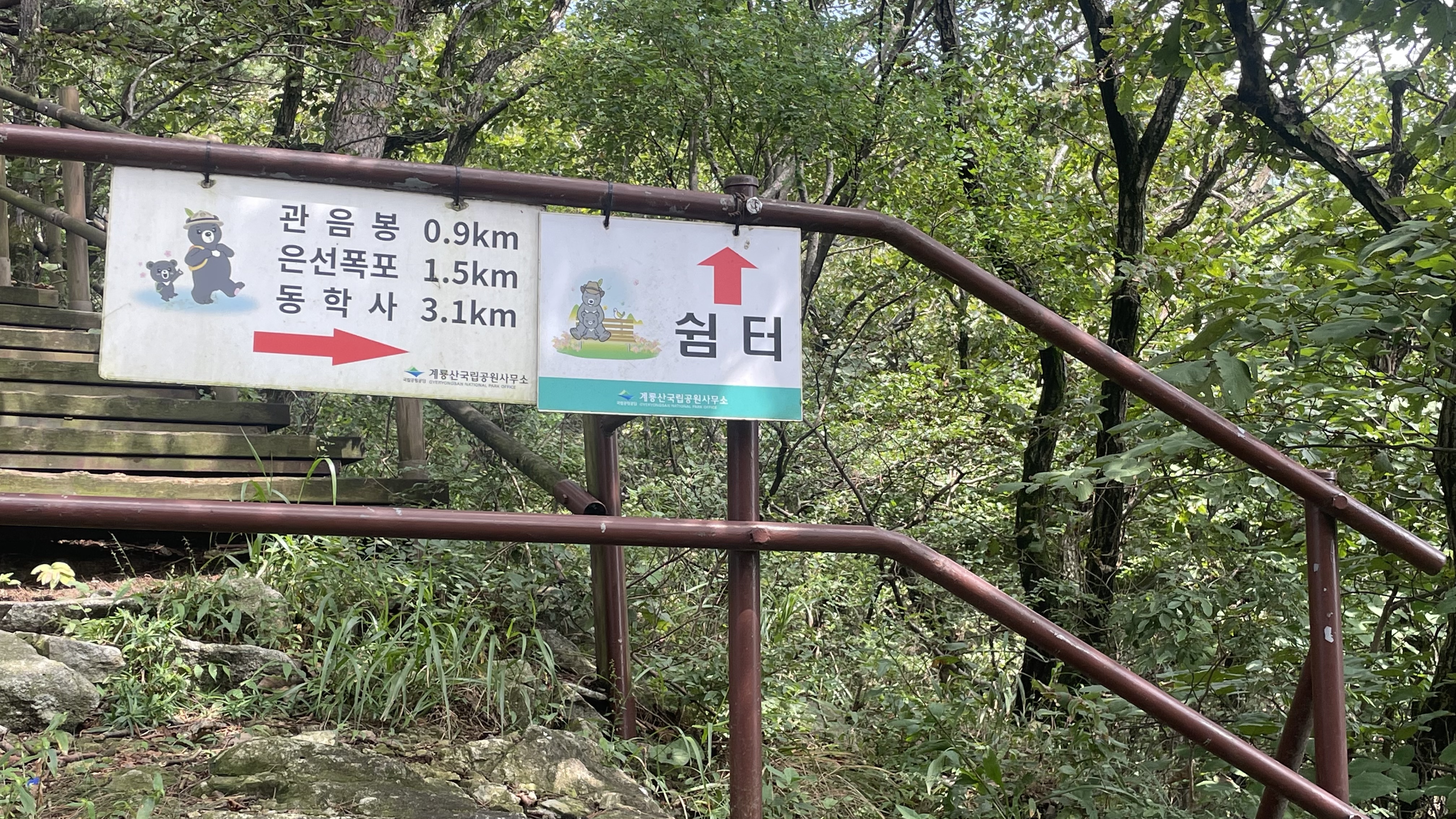 등운암에서 연천봉까지는 먼 것 같지만 가까운 거리입니다. 관음봉만을 목표로 가신다면 굳이 연천봉을 거치지 않고도 갈 수 있습니다. 하지만 계룡산에 오셨다면 연천봉을 거쳐 계룡산을 조금이라도 더 느껴보시길 추천드려요. 거리차이는 얼마 안나요.~
