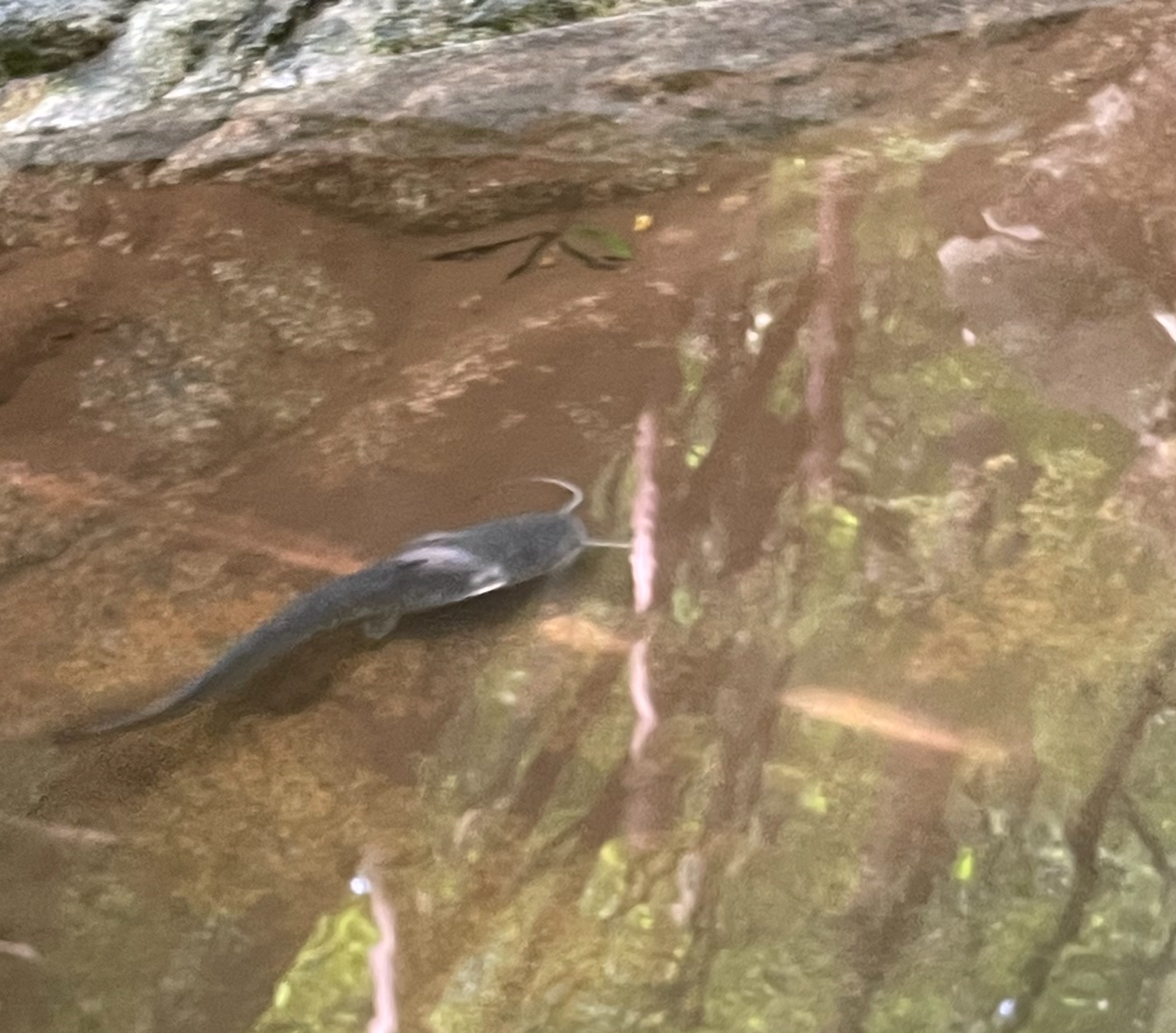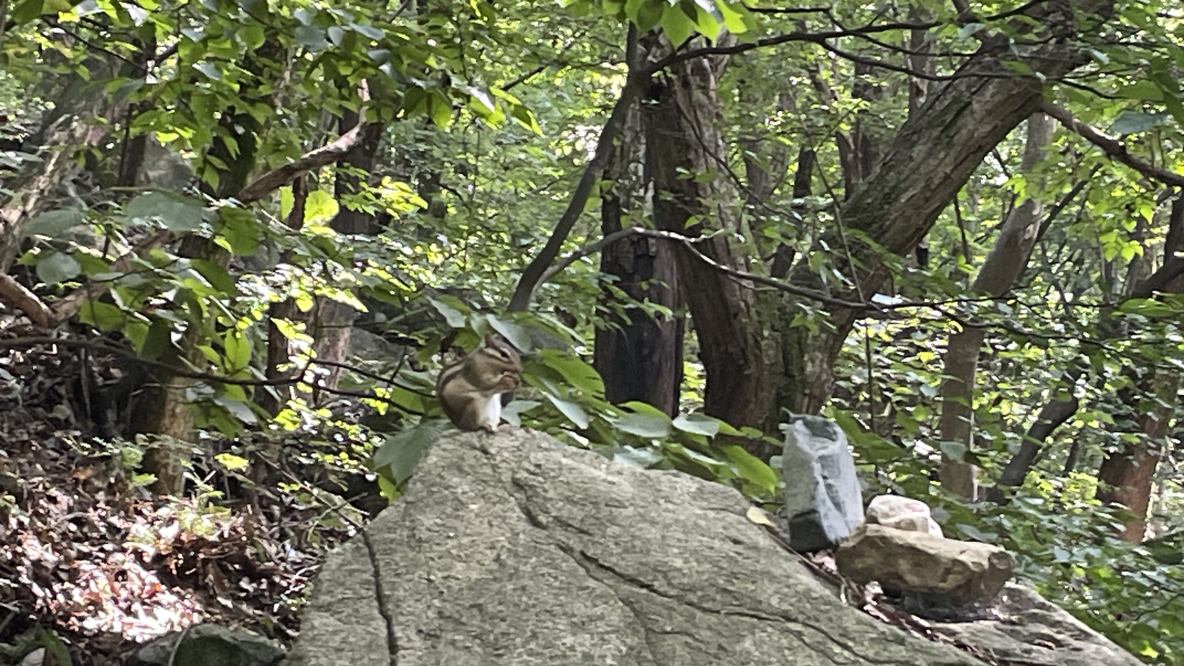 하산길 계곡과 메기, 사람무서운 줄 모르는 다람쥐들이 있어 심심하지 않은 길이었네요.