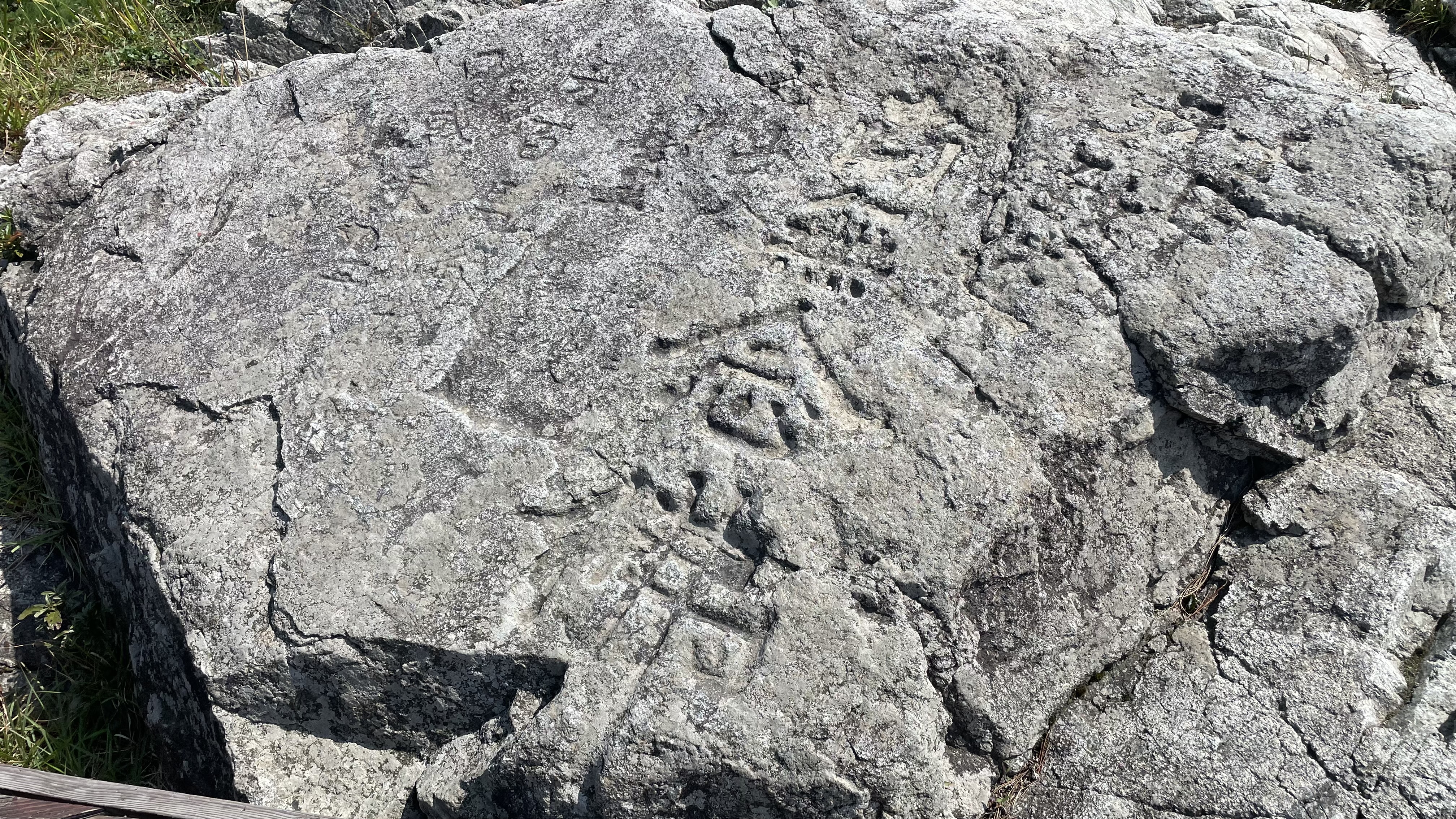 계룡산 낙조 명소 ' 연천봉'에 도착하셨다면 계룡산 능선들과 조망을 감상하며 심장을 진정시켜 보시기 바랍니다. 연천봉에는 석각이 하나 새겨져 있는데 암호문 마냥 새겨진 석각이 흥미롭습니다. 뜻은 '조선은 개국 482년 만에 망하고 새로운 시대가 도래한다'라는 의미라니.... 대놓고 안쓴 이유를 알 것 같네요.