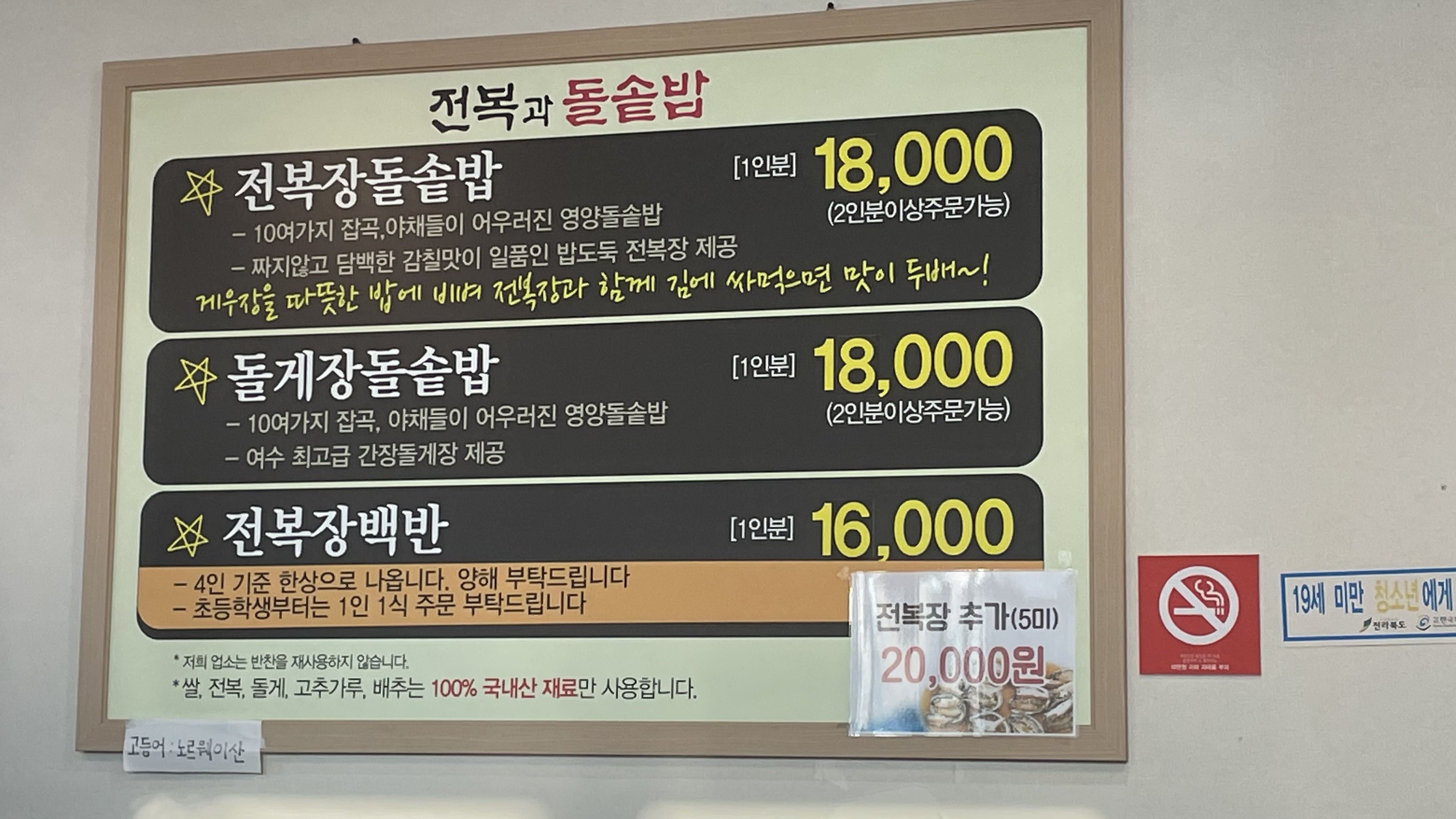 - 추천메뉴: 전복돌솥밥(18,000)