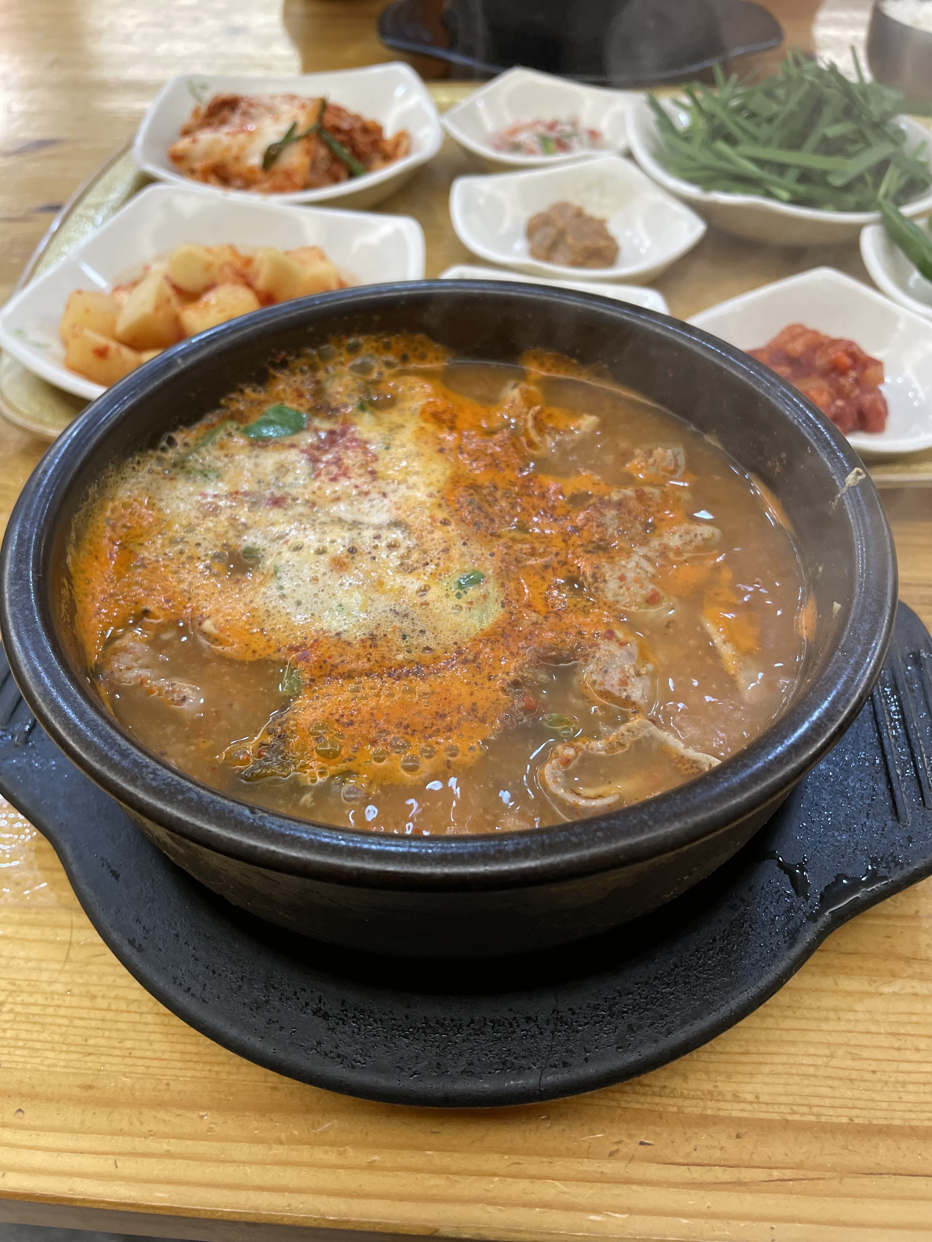 너무 오랜만에 방문했더니 새로운 메뉴들이 보이더라구요. 짬뽕순대국밥(?). 어떤 맛일지 궁금해서 저희는 순대국밥과 짬뽕순대국밥 하나씩 주문했어요. 진한 국물에 쫄깃한 내장들이 함께하는 순대국밥은 역시 저를 배신하지 않네요. 새롭게 맛본 짬뽕순대국밥은...... 기본 순대국밥보다는 훨씬 얼큰한 맛을 내었더라구요. 기존 순대국밥보다 마늘향이 강하게 납니다. 소주한자하면서 순하게 국밥을 먹고싶다면 순대국밥, 좀 취기가 오른다 싶으면 짬뽕순대국밥을 먹으면 좋겠더라구요.