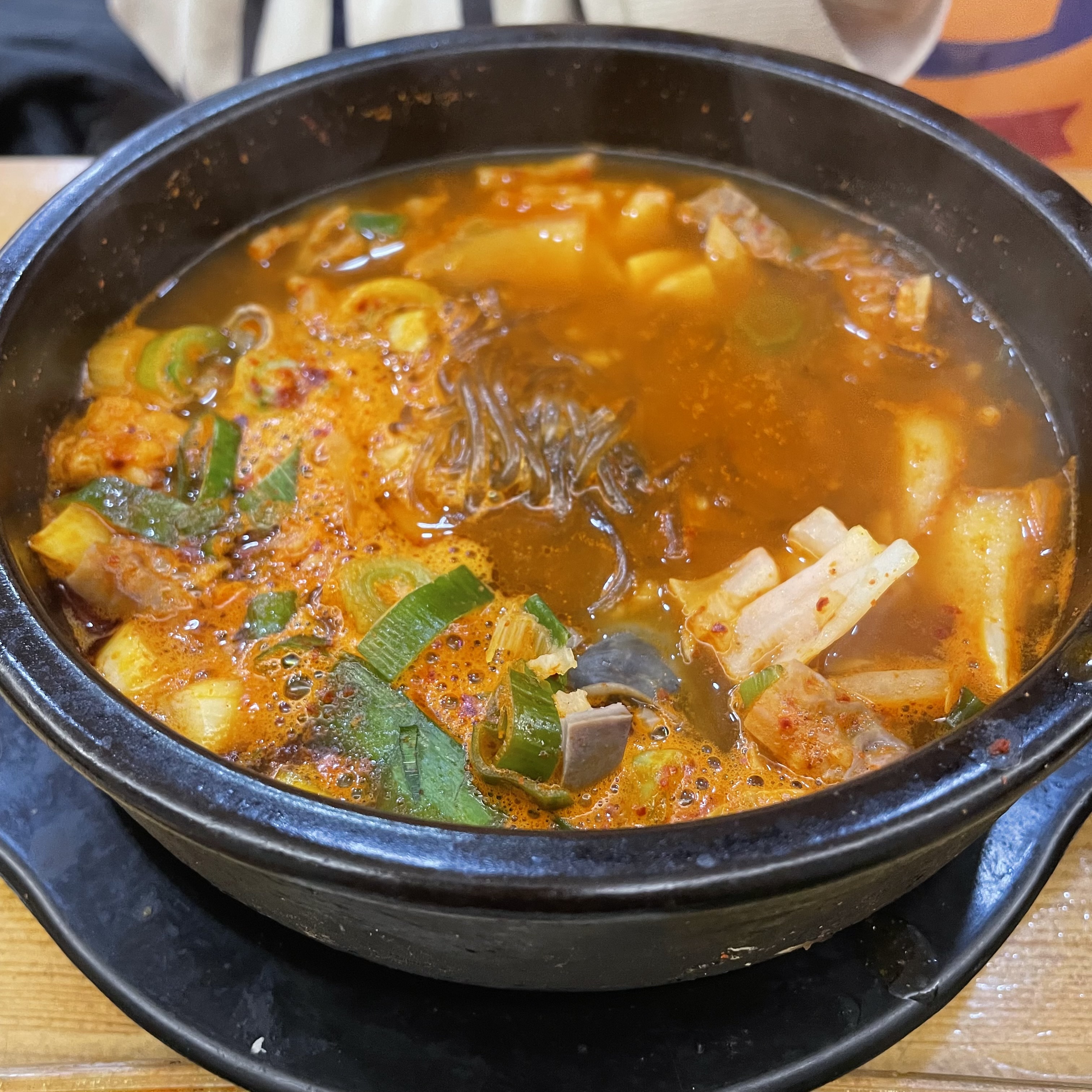 이건 짬뽕순대국밥입니다. 기본 순대국밥과 외적으로 다른건 짬뽕순대국밥에는 당면이 들어가 있더라구요. 그외 다른 것들은 순대국밥과 같이 순대, 내장들이 들어가 있습니다. 위에서 말했듯이 짬뽕순대국밥은 마늘을 많이 넣어서 알싸한 맛이 강합니다.