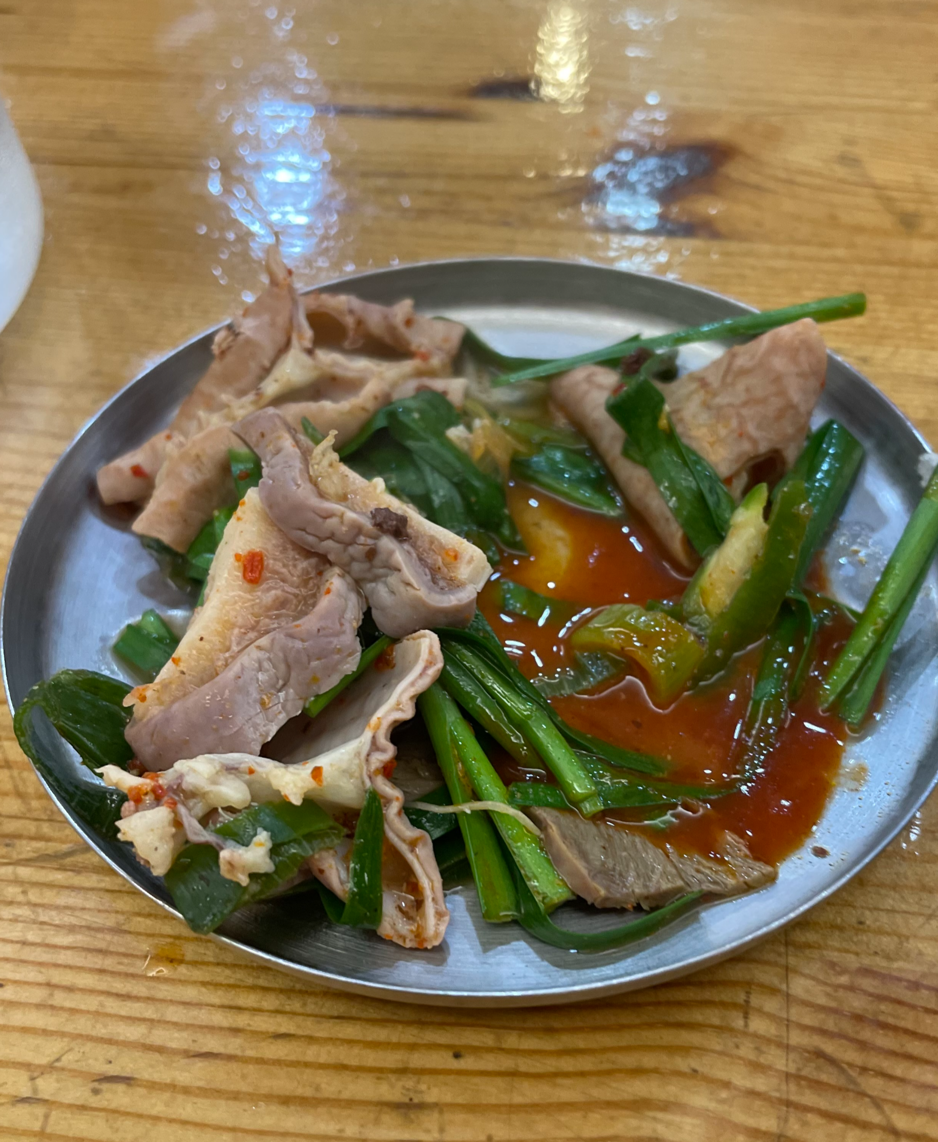 너무 오랜만에 방문했더니 새로운 메뉴들이 보이더라구요. 짬뽕순대국밥(?).  어떤 맛일지 궁금해서 저희는 순대국밥과 짬뽕순대국밥 하나씩 주문했어요. 진한 국물에 쫄깃한 내장들이 함께하는 순대국밥은 역시 저를 배신하지 않네요. 새롭게 맛본 짬뽕순대국밥은......  기본 순대국밥보다는 훨씬 얼큰한 맛을 내었더라구요. 기존 순대국밥보다 마늘향이 강하게 납니다. 소주한자하면서 순하게 국밥을 먹고싶다면 순대국밥, 좀 취기가 오른다 싶으면 짬뽕순대국밥을 먹으면 좋겠더라구요.