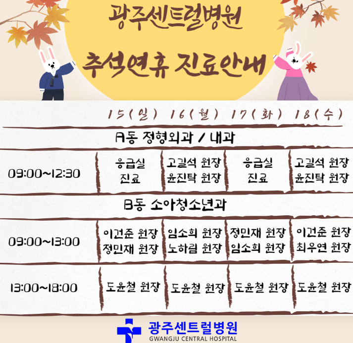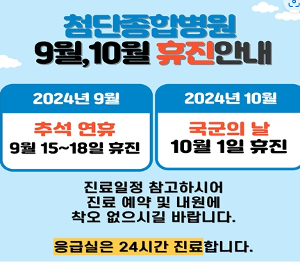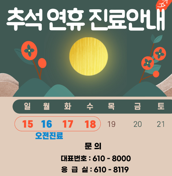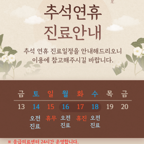 ▶ 추석연휴 진료안내: 14~18일 응급실 운영