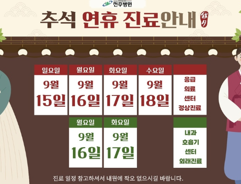 ▶ 추석연휴 진료안내: 14~18일 응급실 운영