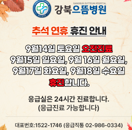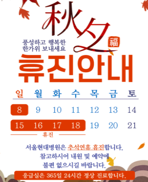 ▶ 추석연휴 진료안내: 14~18일 응급실 운영