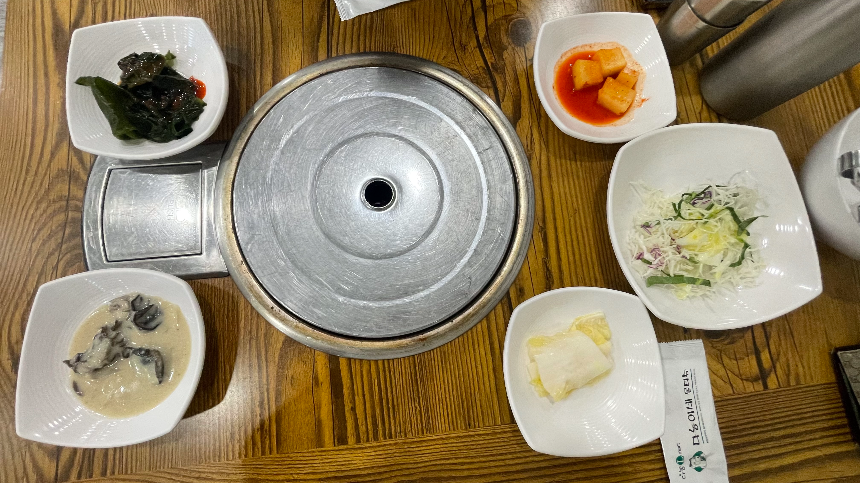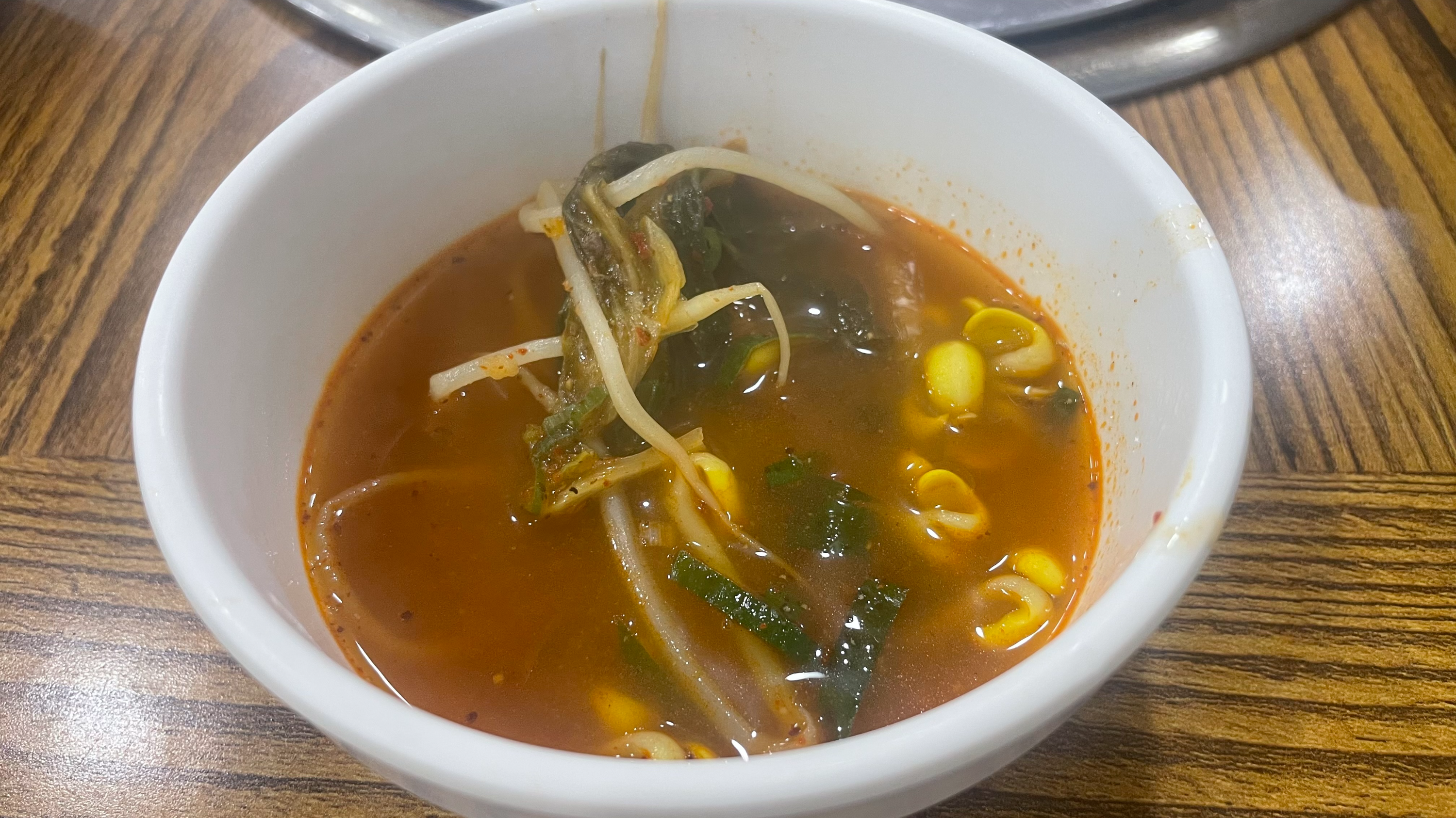 기본 상차림입니다. 간단한 곁반찬에 감자탕 국물이 함께 나왔습니다. 감자탕 국물이 굉장히 깔끔하더라구요. 감자탕도 한번 먹어봐야겠습니다.