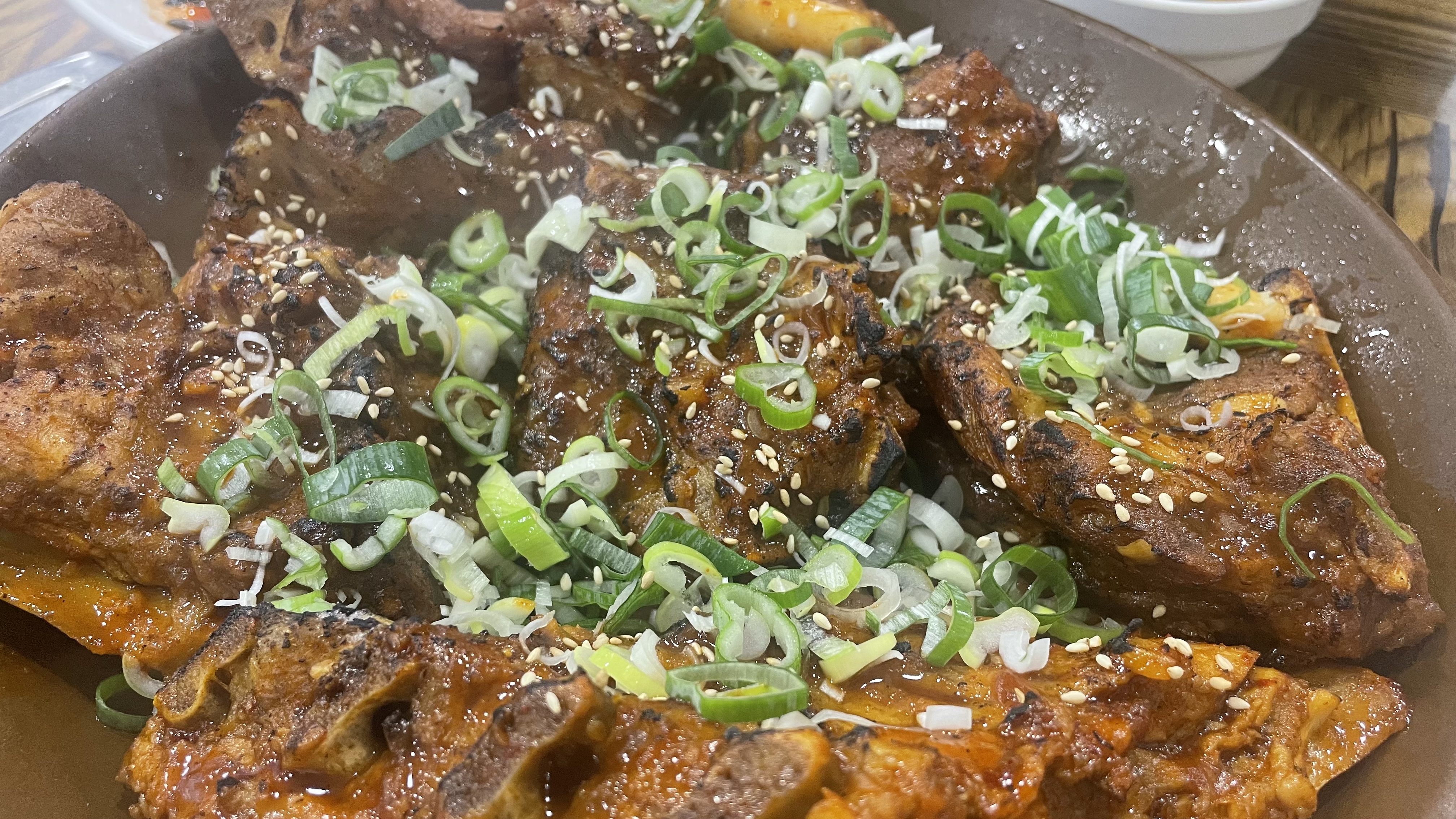 뼈구이의 매력은 양념이더라구요. 뭔가 익숙한 캡사이신과 불맛, 불고기 양념맛?! 이라고 해야하나..... 이거 중독적인 매운맛입니다. 처음엔 뼈구이를 먹고 볶음밥을 주문해 먹으려 했으나 양념맛에 매료되어 공기밥을 주문해 비벼 먹었네요. 저는 술한잔이 너무 당기는 맛이었어요.~ 차만 아니었다면 ...ㅠㅠ