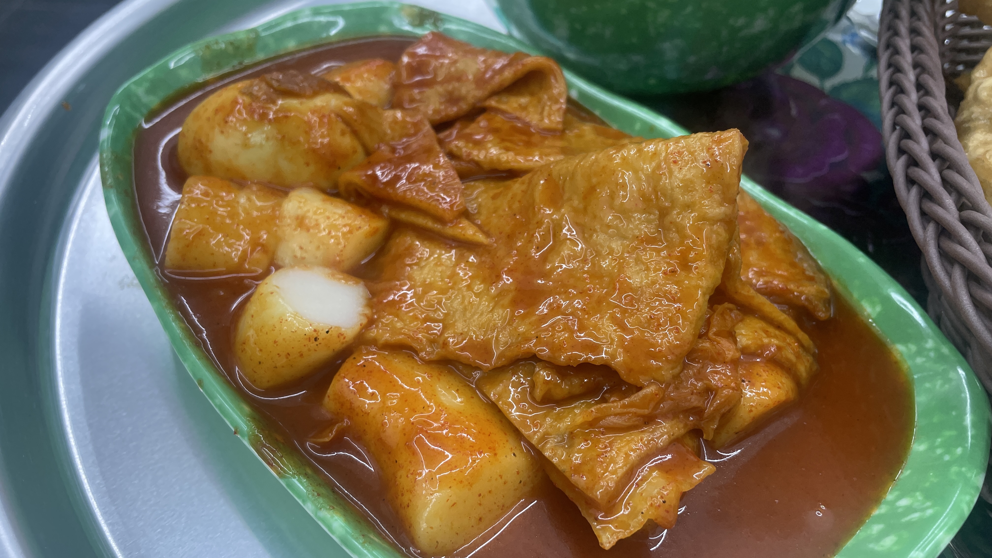 저희는 떡볶이와 함께 야끼만두를 주문했습니다. 떡볶이 국물을 맛보니 튀김에 안찍어 먹을 수가 없더라구요. 야끼만두는 당면으로 속이 가득찬 만두인데 바싹한 표면과 당면의 식감이 정말 좋았습니다.