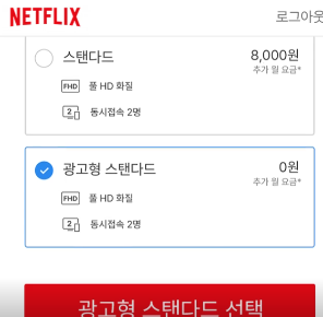 2. 계정연결 후 넷플릭스 요금제 중 광고형 스탠다드를 선택합니다. 구독료 0원이 보이실 거에요.! 여기서 난 광고형스탠다드가 아닌 광고없이 보는 스탠다는 보고싶다!!! 라는 분은