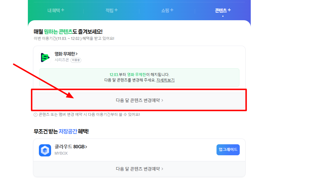 3. 멤버십 화면에서 콘텐츠+ 클릭!