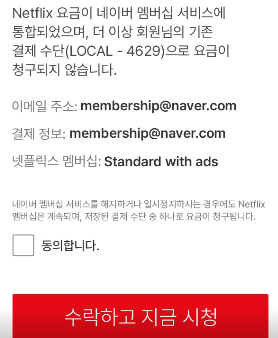 기존의 넷플릭스 구독은 해지한다는 것에 동의 체크를 하시면 끝.!!!