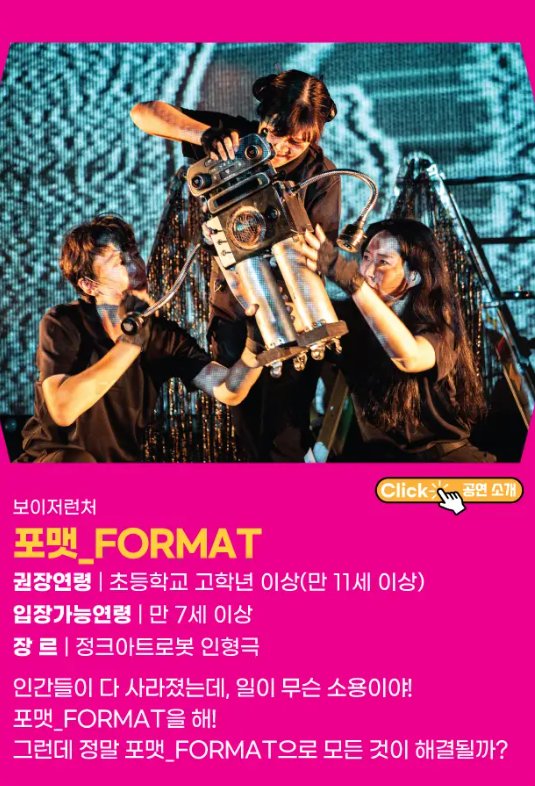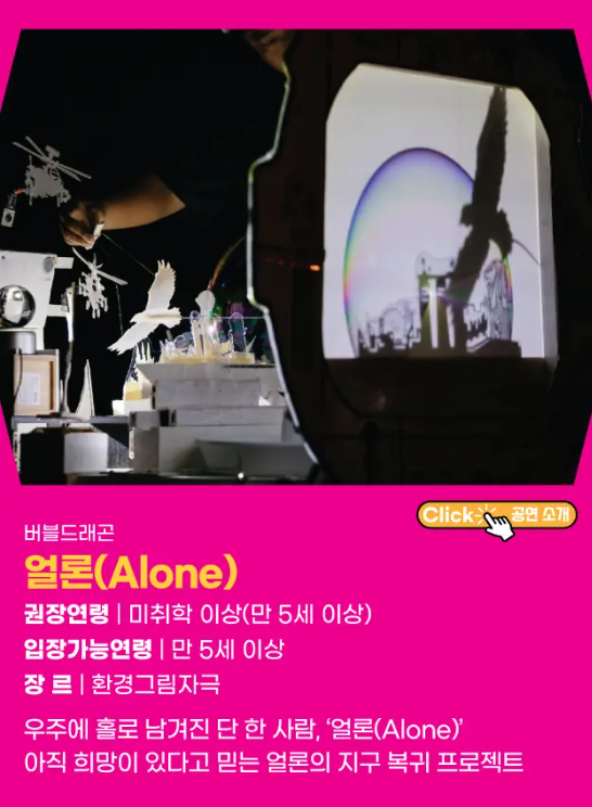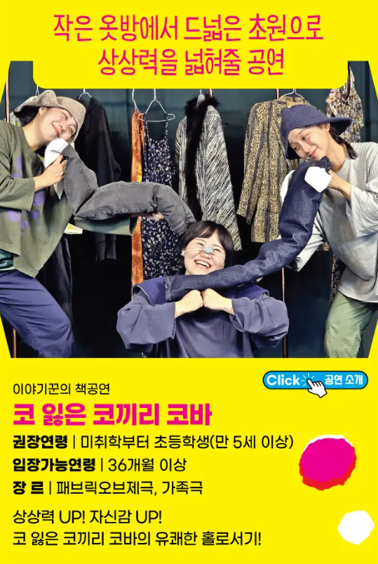 연극, 인형극, 뮤지컬 등 다양한 장르의 공연을 선보이며, 창의적인 이야기와 시각적 아름다움으로 어린이들의 상상력을 자극합니다. 또한, 아이들만을 위한 공연이 아니라 가족 모두가 함께 즐길 수 있는 프로그램들로 가득합니다.