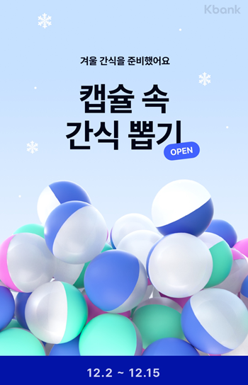 안녕하세요, 추운 겨울이 성큼 다가왔습니다! 여러분의 겨울을 더욱 따뜻하게 만들어 줄 반가운 소식을 전해드릴게요. 대한민국 대표 모바일 은행 케이뱅크가 준비한 특별한 겨울간식 이벤트가 시작되었습니다. 케이뱅크의 이벤트 링크를 따라가면 간식을 받을 수 있습니다.
