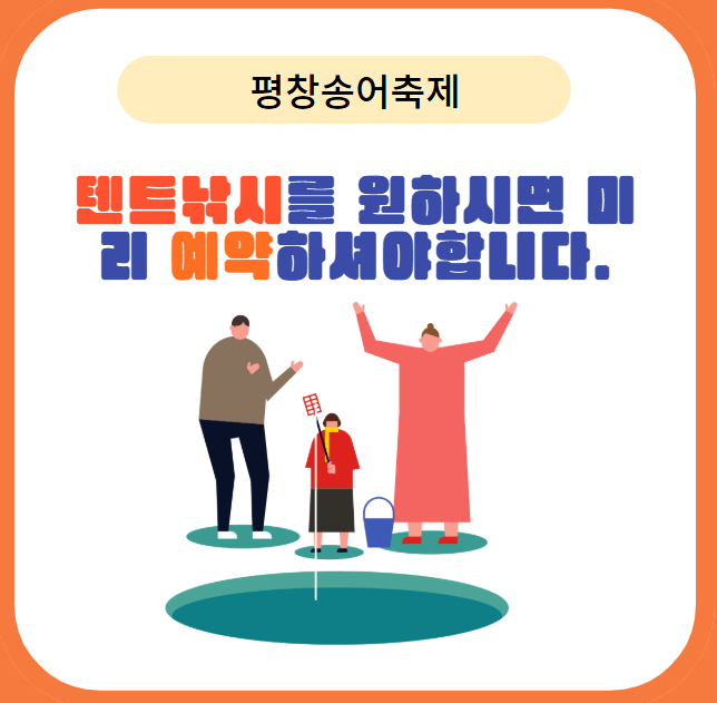 [평창송어축제] 프로그램 및 가격 안내: 텐트낚시를 원하시면 예약을 하셔야 합니다.