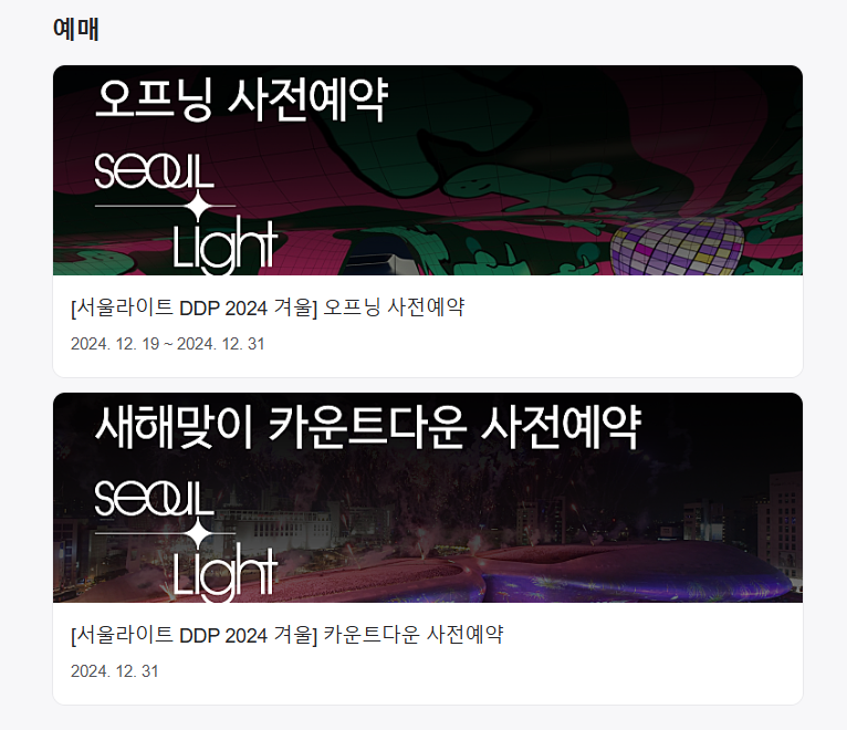 ※ 서울라이트 DDP는 사전예약을 통해 입장 가능합니다. 입장료는 무료 에요.^^ 링크를 클릭시 아래와 같은 사전예약 사이트로 바로 이동합니다.