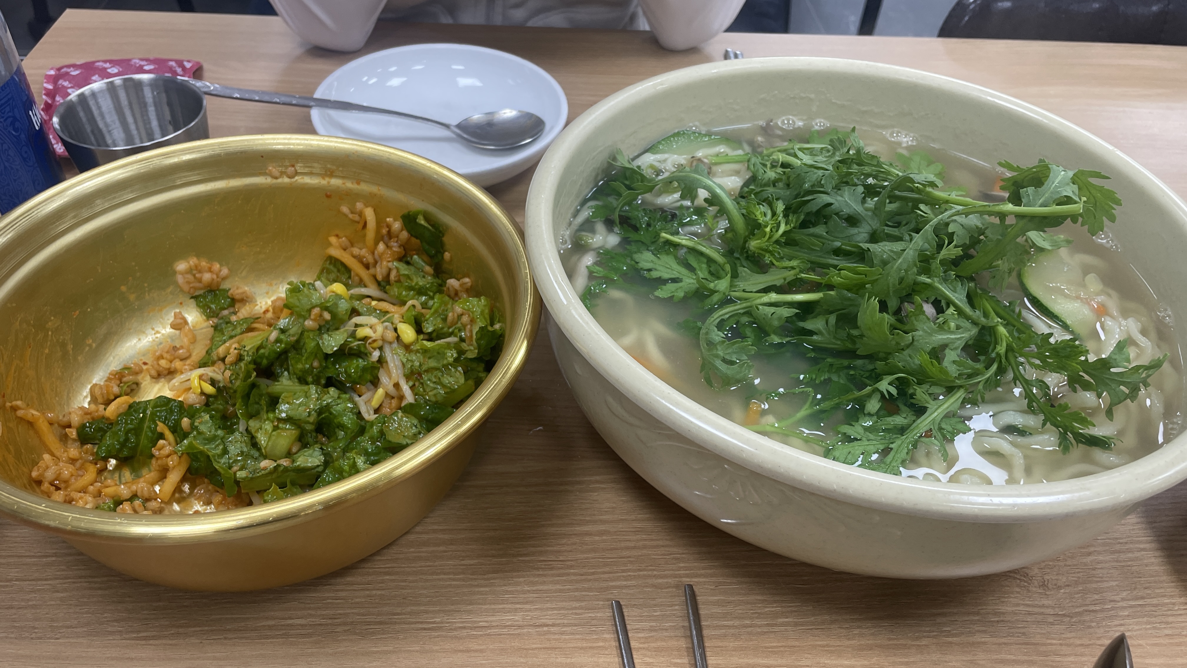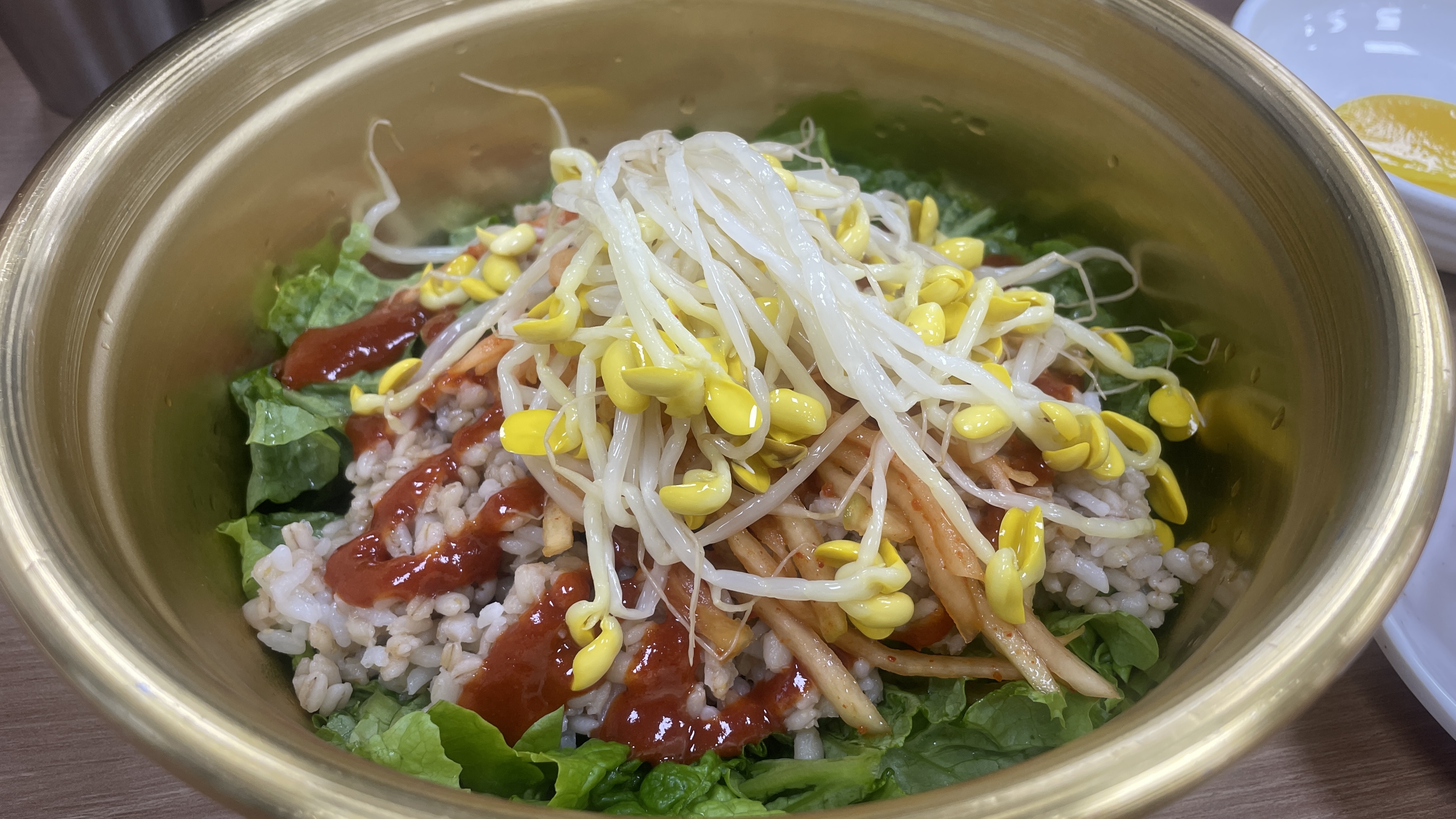 저희는 해물칼국수 2인분을 주문했습니다. 메인메뉴가 나오기 전 주신 보리밥입니다. 양푼에 담아 나오는데 쓱쓱 비벼먹으면 정말 맛있어요.!!