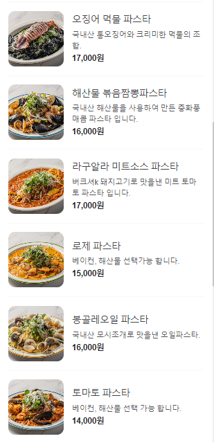 | 파스타류 | 찹스테이크도 있답니다 | 리소토 류 | 피자류(만원?!) |
