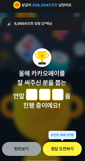 카카오페이: 올해 카카오페이를 잘 써주신 분을 뽑는 연말 시상식을 진행 중이에요!