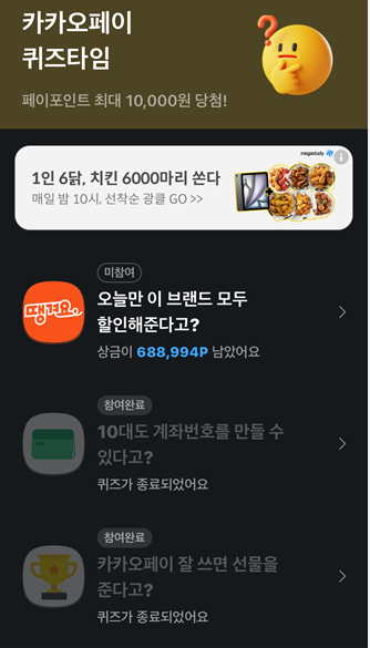 - 카카오톡 앱에서 '카카오페이' 서비스를 선택하거나, 퀴즈 관련 알림 메시지를 통해 접근할 수 있습니다.