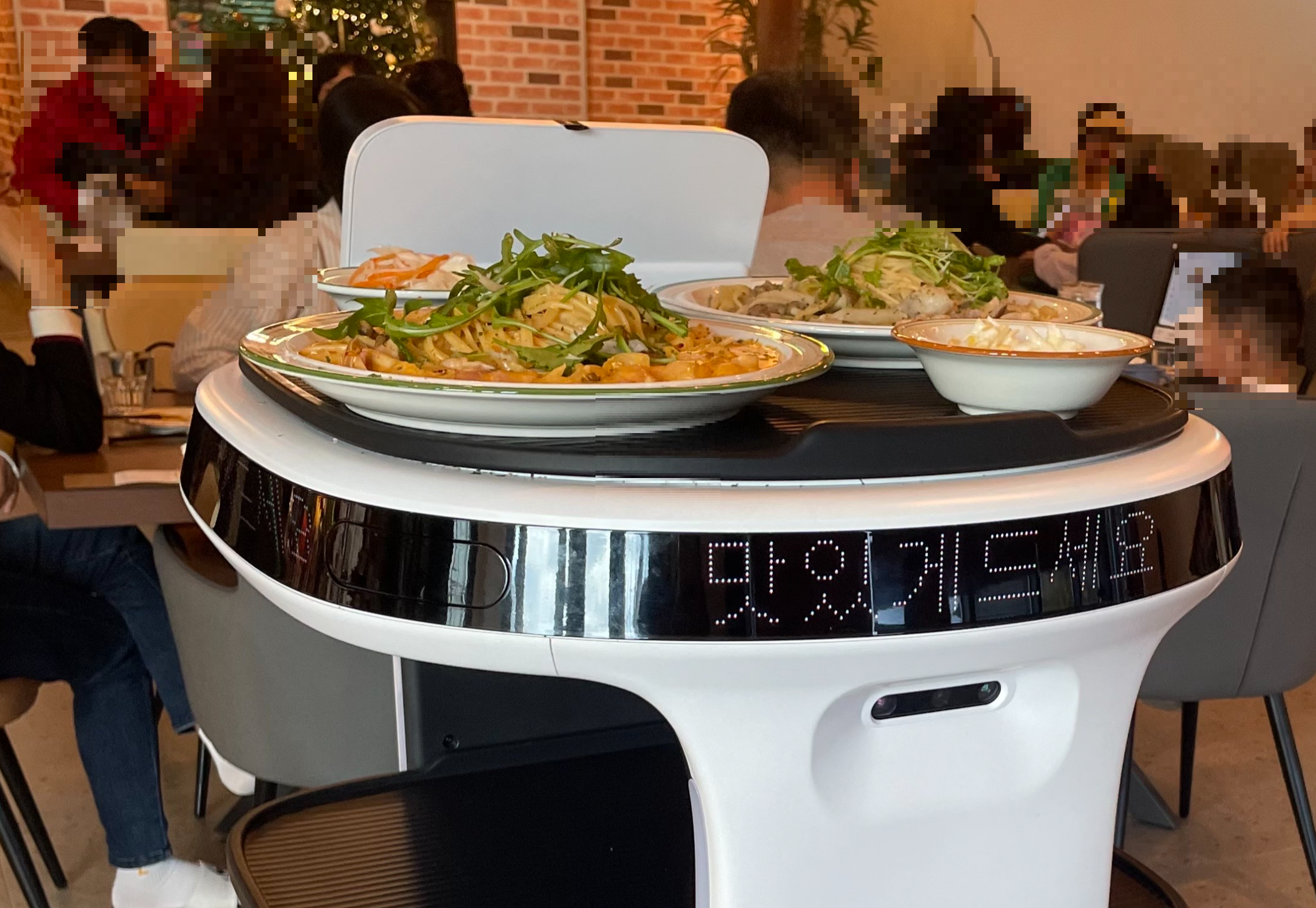 메뉴 주문 후 서빙은 로봇이 해줍니다. 로봇이 테이블 앞까지 가져다 주면 직원분이 테이블로 옮겨주시더라구요. 로봇이 테이블까지 옮겨주는 세상이 곧 오겠죠?ㅎ