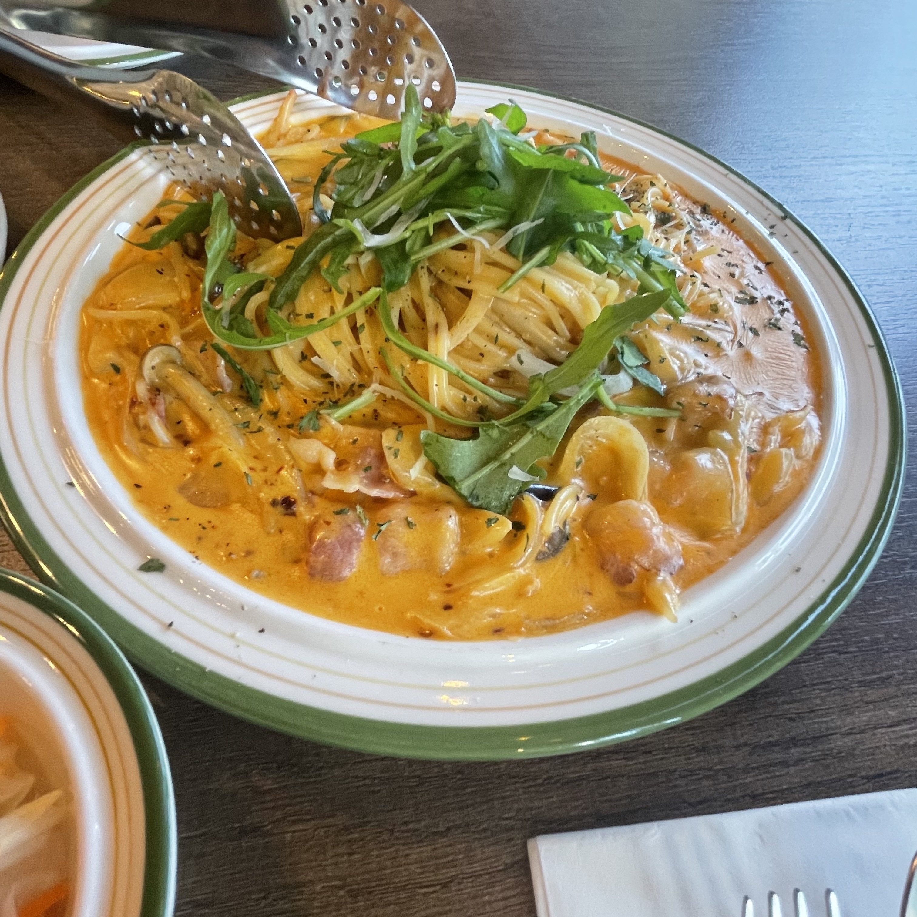 스파이시크림파스타는 너무 매울까 걱정했는데 은근한 매웃맛과 크림의 조합으로 질리지 않는 맛을 보여주더라구요. 특히 오일파스타와 스파이시크림파스타의 조합이 아주 좋았습니다 양도 푸짐하였습니다. 조금 매콤하다 싶으면 오일파스타 한포크 먹어주면 입안이 다시 정리되는 느낌이었어요.