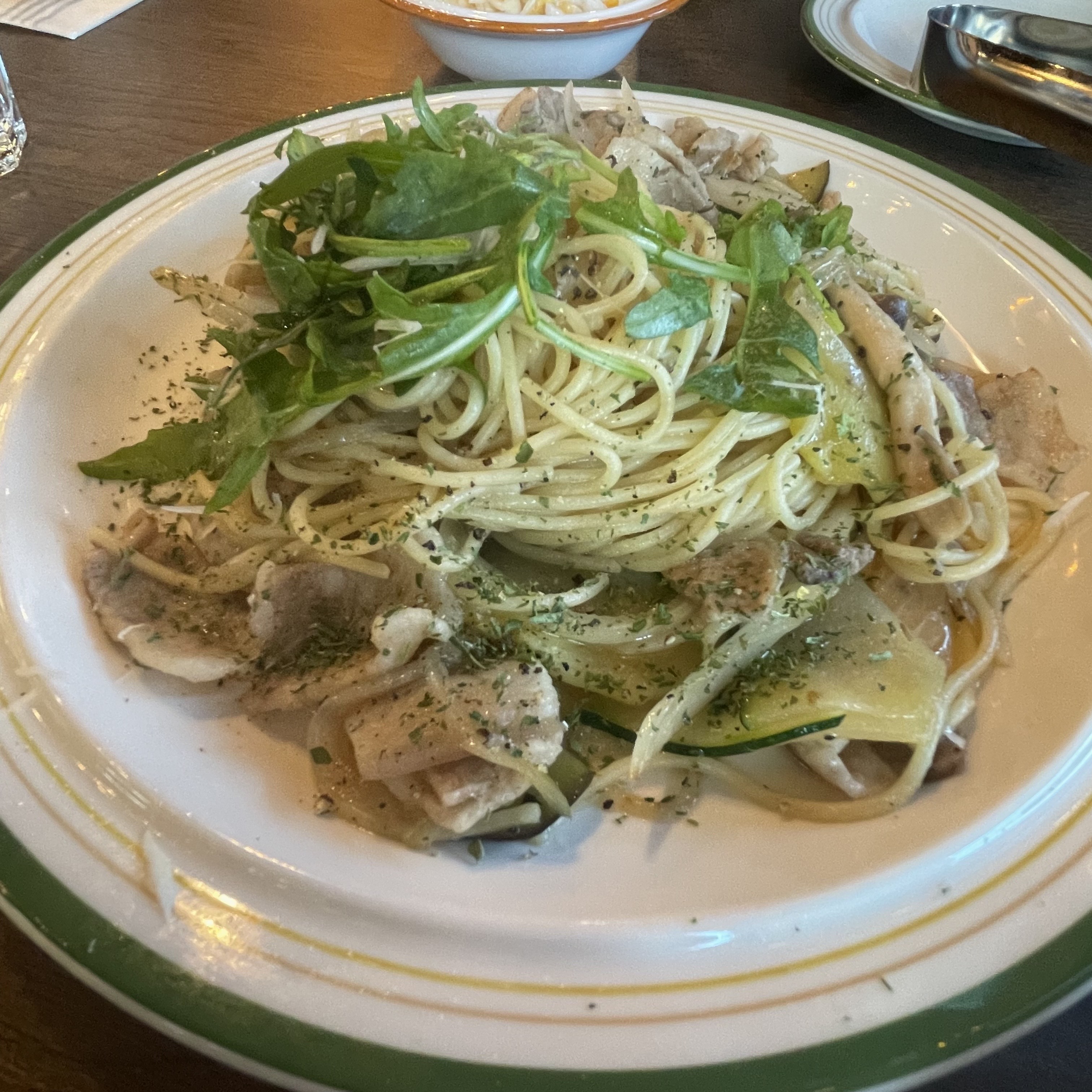 버크셔K오일파스타는 대패삼겹과 오일파스타의 조합이었습니다. 오일파스타는 오일과 삼겹살이 함께 있어 느끼하진 않을까 걱정이 됐는데 느낀한 감을 감질맛나는 후추와 아주 좋은 궁합을 보여주더라구요. 느끼한 맛 없이 아주 맛있게 먹었습니다.