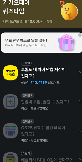 - 카카오톡 앱에서 '카카오페이' 서비스를 선택하거나, 퀴즈 관련 알림 메시지를 통해 접근할 수 있습니다.