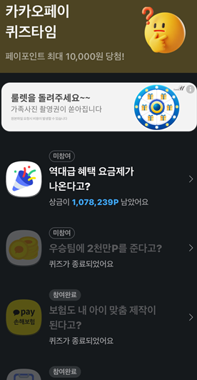 - 카카오톡 앱에서 '카카오페이' 서비스를 선택하거나, 퀴즈 관련 알림 메시지를 통해 접근할 수 있습니다.